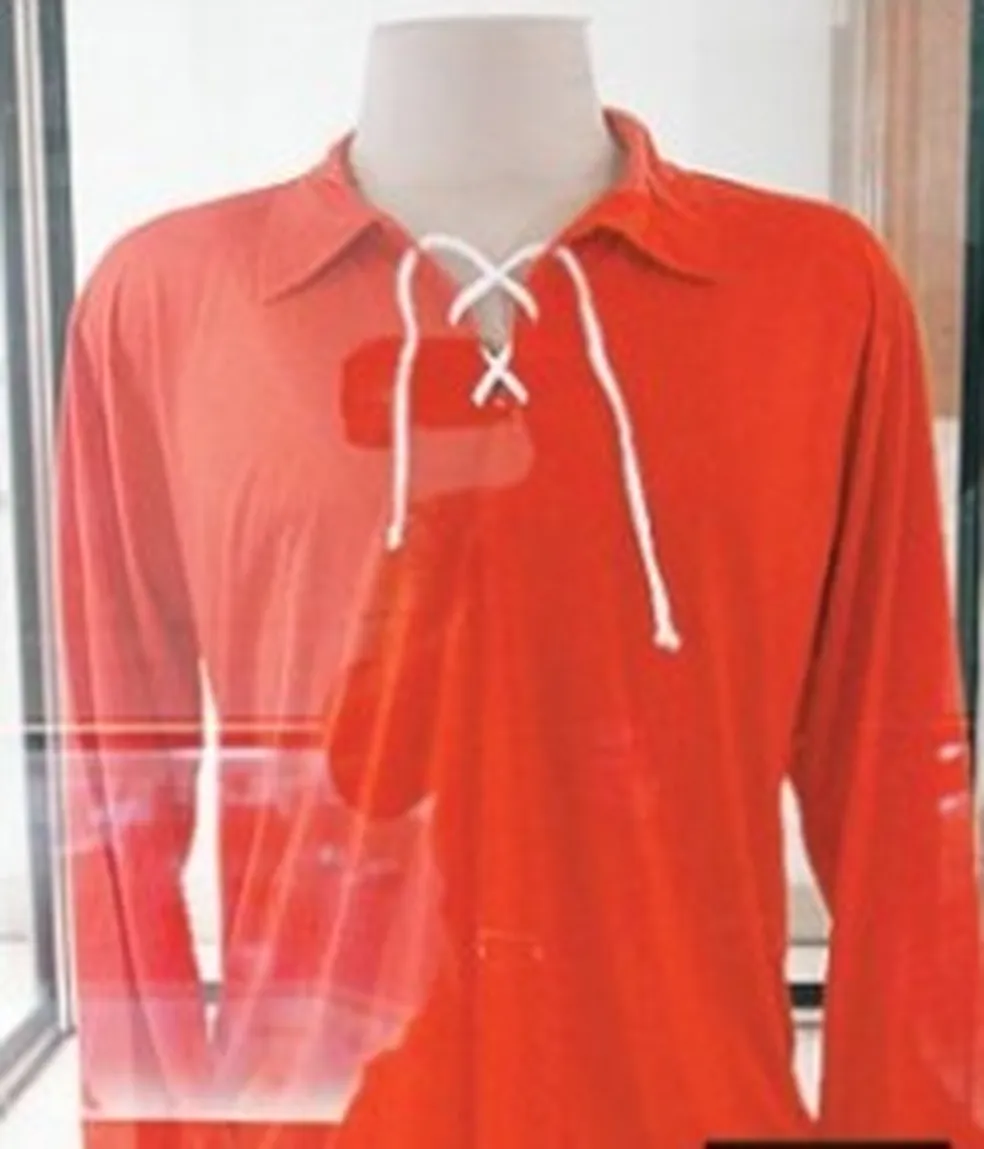 Camisa vermelha usada pela seleção brasileira no Sul-Americano de 1917 — Foto: Reprodução/Museu da Seleção Brasileira