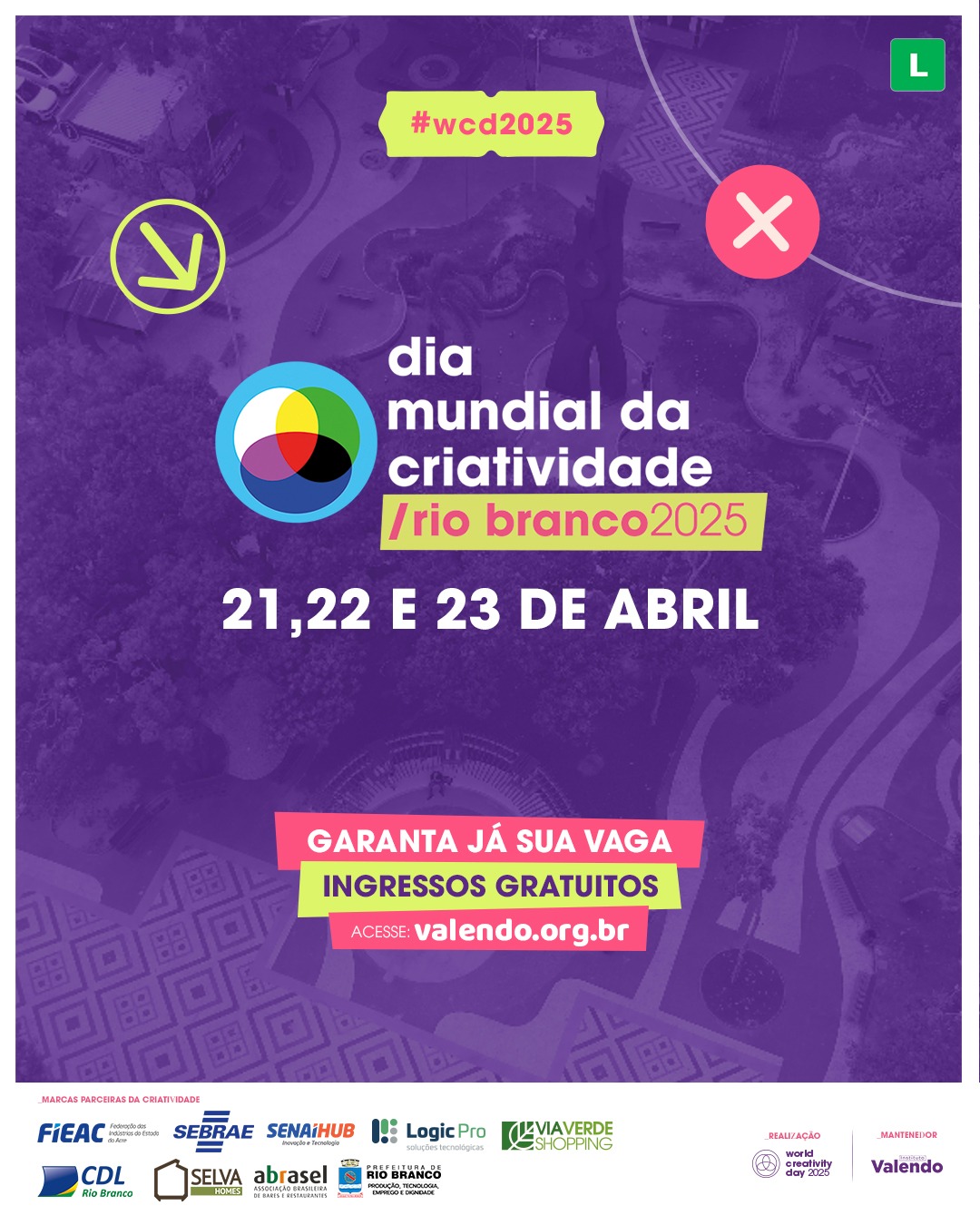Durante três dias, Rio Branco será palco de um movimento global que transforma ideias em oportunidades e conecta pessoas por meio da arte, da tecnologia e da cultura. É o World Creativity Day, o maior festival colaborativo de criatividade e inovação do planeta.