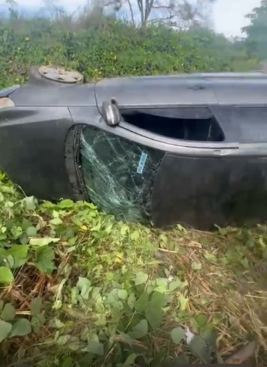 Nas imagens, é possível perceber que o carro saiu da estrada e foi parar em meio ao matagal, a uma distância considerável da rodovia. O vídeo, feito por um homem que presenciou a cena, revela ainda que ele conseguiu resgatar duas vítimas: um senhor e uma senhora, que estavam dentro do veículo no momento do acidente.