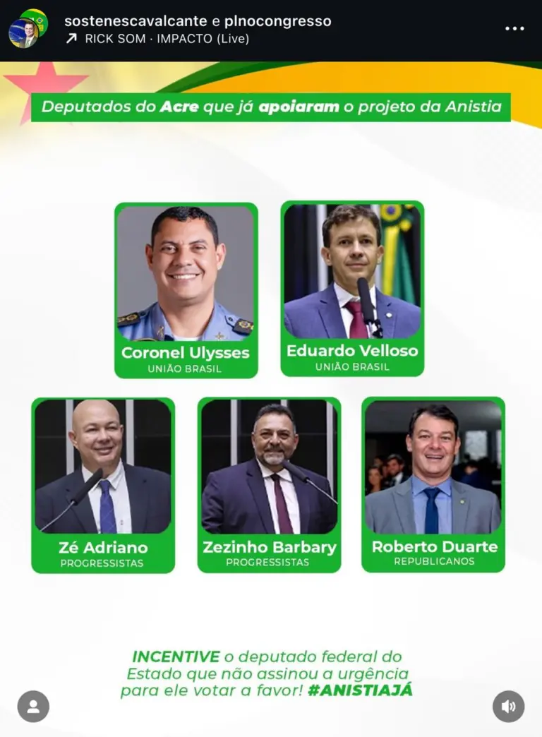 Com a adesão de Adriano, sobe para cinco o número de deputados acreanos que apoiam a ideia – já haviam assinado Coronel Ulysses e Eduardo Velo, do União Brasil, Roberto Duarte, do Republicanos, e Zezinho Barbary, do PP. Deixaram de assinar as deputadas Antônia Lúcia, do Republicanos, Meire Serafim, do União Brasil, e Socorro Neri, do PP.