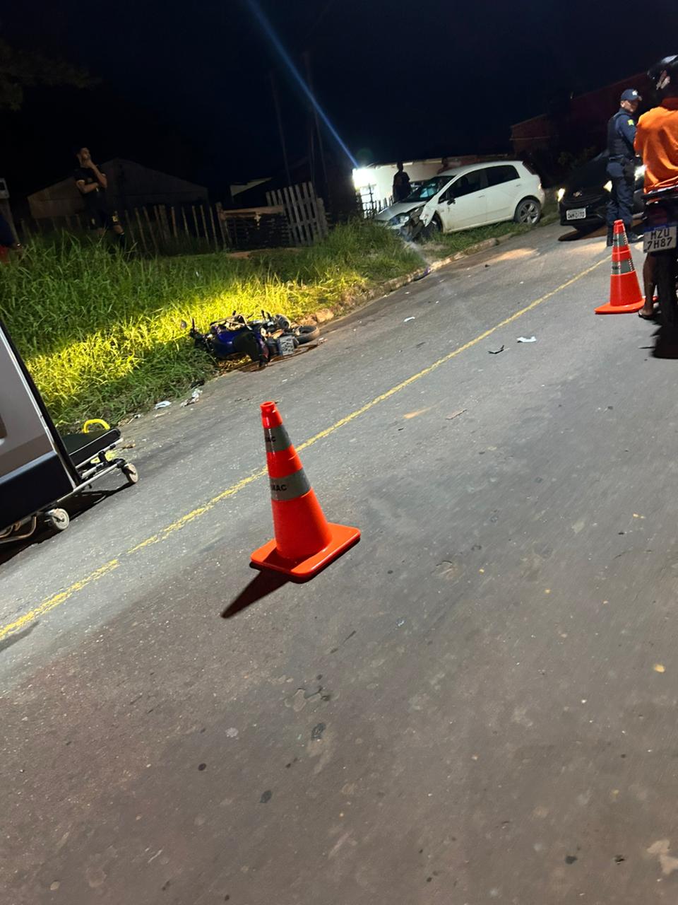 Segundo informações iniciais, o solicitante do atendimento relatou o sinistro às autoridades e informou que não conseguiu contato com o SAMU, motivo pelo qual buscou apoio da polícia. No local, a guarnição constatou que o condutor da motocicleta, identificado como R. S., encontrava-se caído à margem da pista, com ferimentos visíveis.