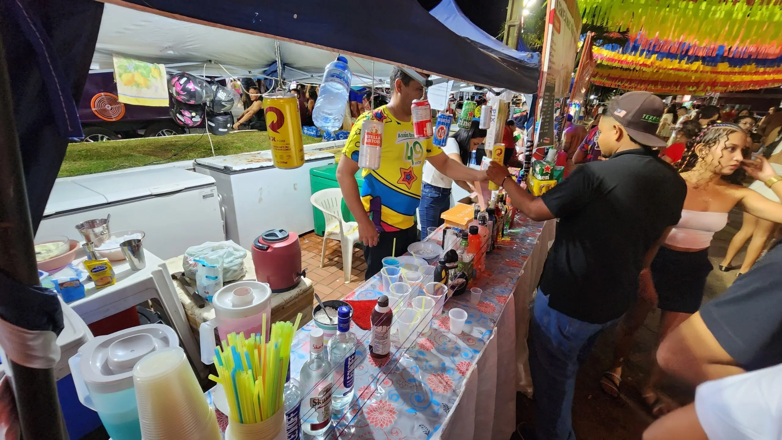 Jeferson Germano, vendedor no evento, conta que a sua barraca oferece desde a tradicional cerveja até drinques mais “energéticos” como capeta, caipirinha e outras bebidas fortes. “O que tá saindo mais é a cerveja suja, bombeirinho e o capeta”, diz.