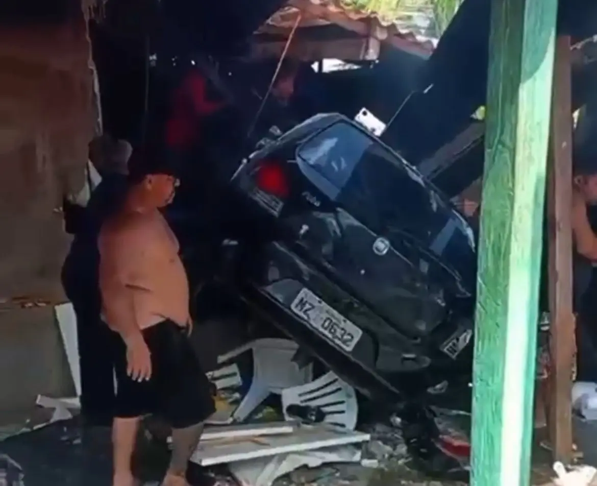 Carro invade churrascaria e atinge pessoas durante almoço em Rio Branco; VÍDEO