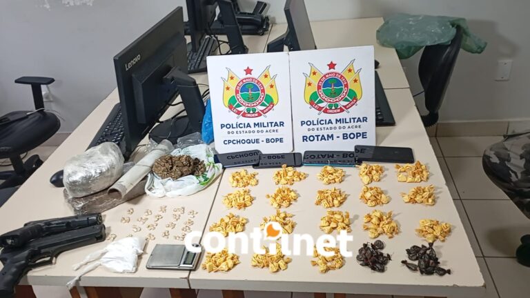 O monitorado por tornozeleira eletrônica Airon Aquino Rodrigues, de 21 anos, foi preso, acusado de tráfico de drogas, na tarde desta quinta-feira (29), em uma área de mata localizada na Rua Anápolis, no bairro da Paz, em Rio Branco.