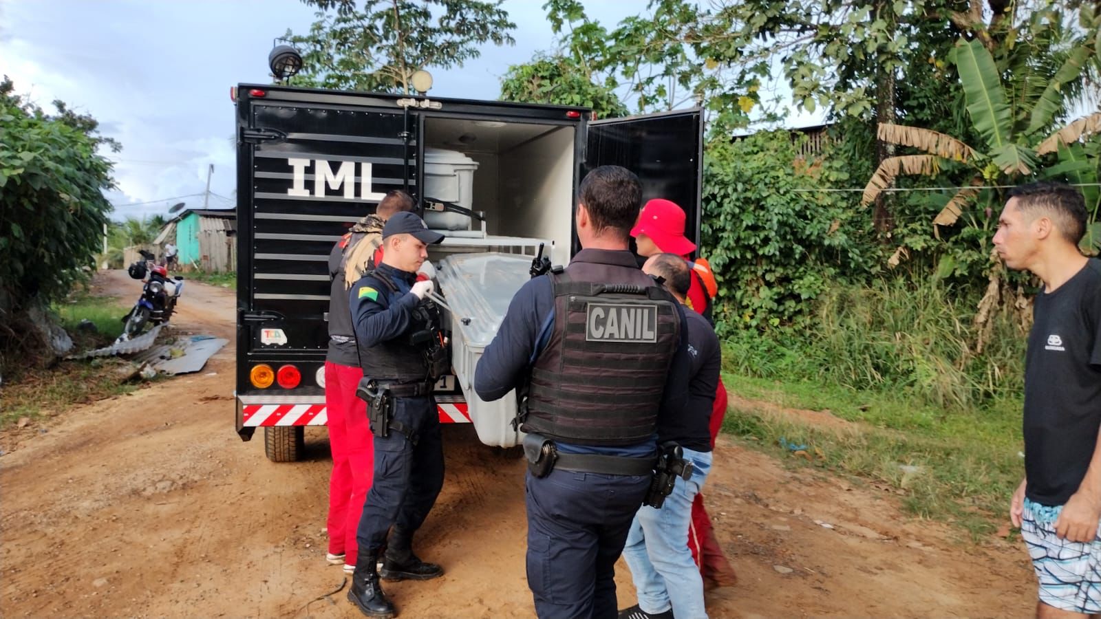 Corpo de Kelvin é colocado na viatura do IML para ser levado ao Hospital Regional Raimundo Chaar/Foto: ContilNet