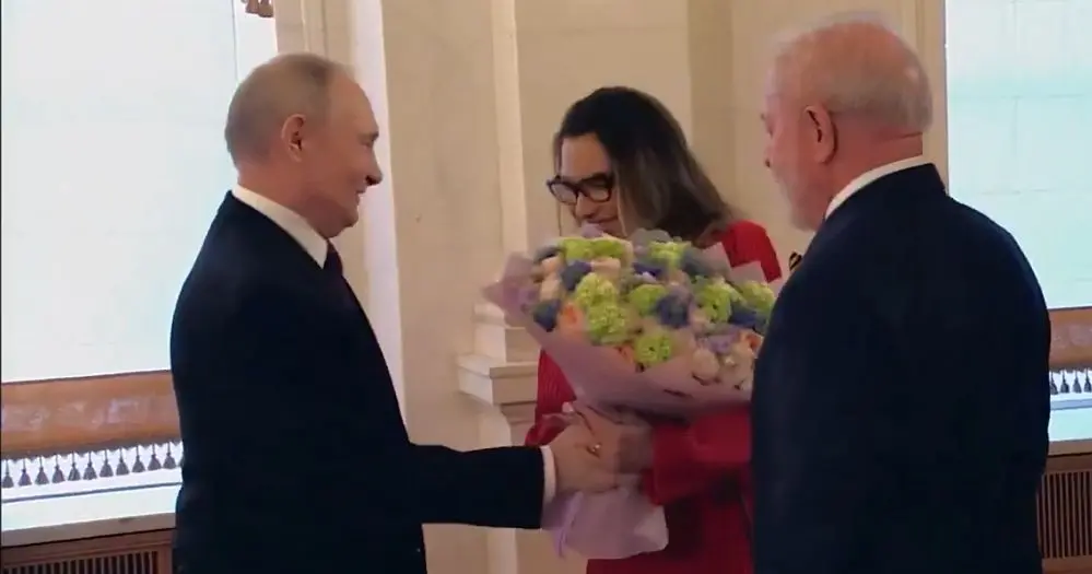 O presidente Luiz Inácio Lula da Silva foi recebido em Moscou com um gesto simbólico de cordialidade: o presidente da Rússia, Vladimir Putin, entregou flores à primeira-dama Janja da Silva. A recepção calorosa marcou o início de conversas diplomáticas entre os dois líderes, em um momento de destaque para as relações internacionais do Brasil.