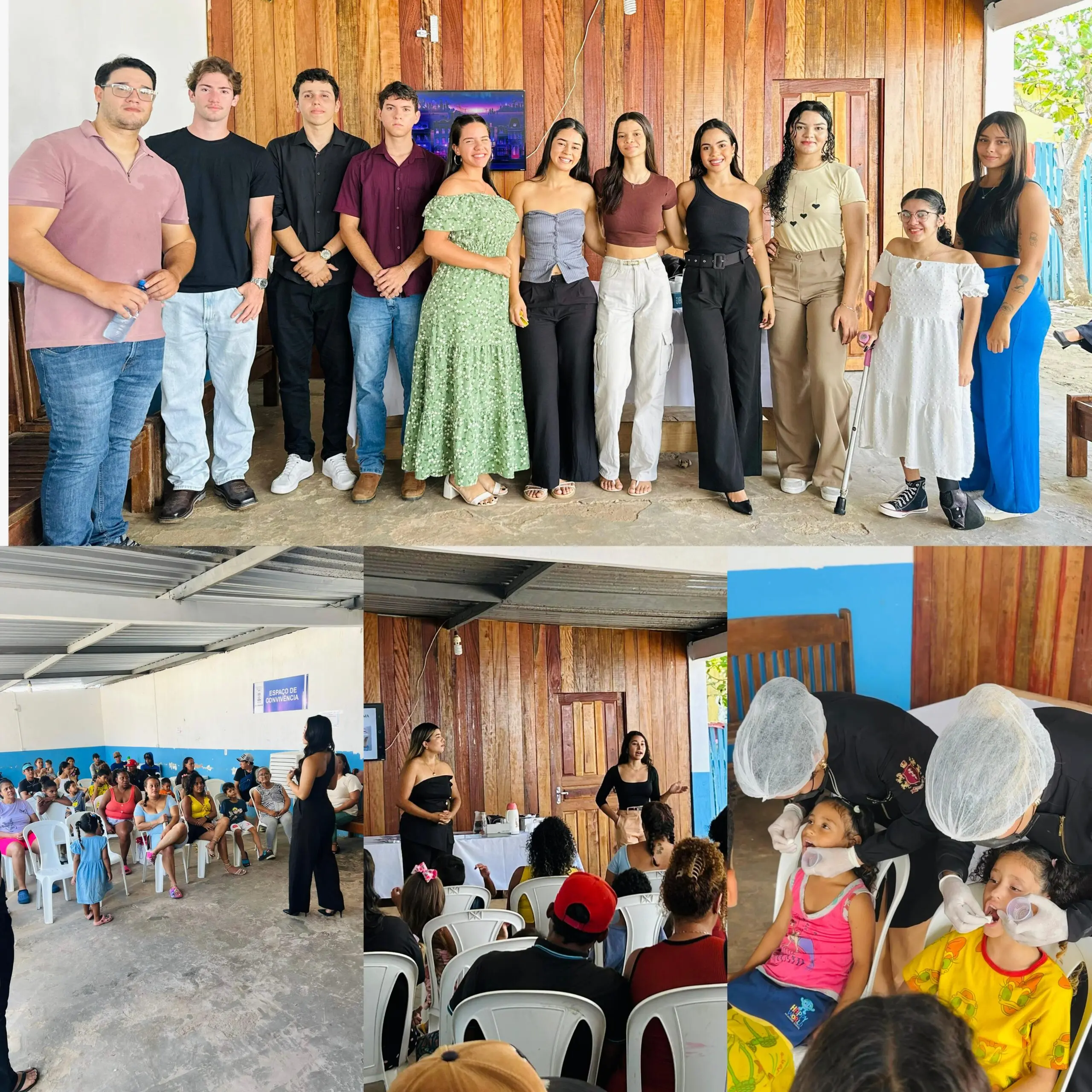 A ação incluiu doações de roupas, lençóis de cama, lanches e uma palestra educativa sobre saúde bucal ministrada pelas dentistas Dra. Vanessa Lima e Dra. Emily Silva, do Consultório Oral Clean. As profissionais também realizaram a aplicação de flúor em crianças e adultos, com a distribuição de creme dental infantil para 14 crianças com idades entre 0 e 6 anos, além de creme dental para os adultos. Ao final da atividade, foram sorteados cinco kits contendo escova e creme dental.