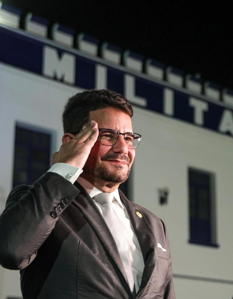 O governador do Acre prestou homenagem aos 109 anos da Polícia Militar do Acre (PMAC) em uma solenidade realizada na sede da instituição, na Praça da Revolução, em Rio Branco. No vídeo divulgado nas redes sociais, ele aparece prestando continência e beijando a bandeira da corporação em sinal de respeito e reconhecimento.