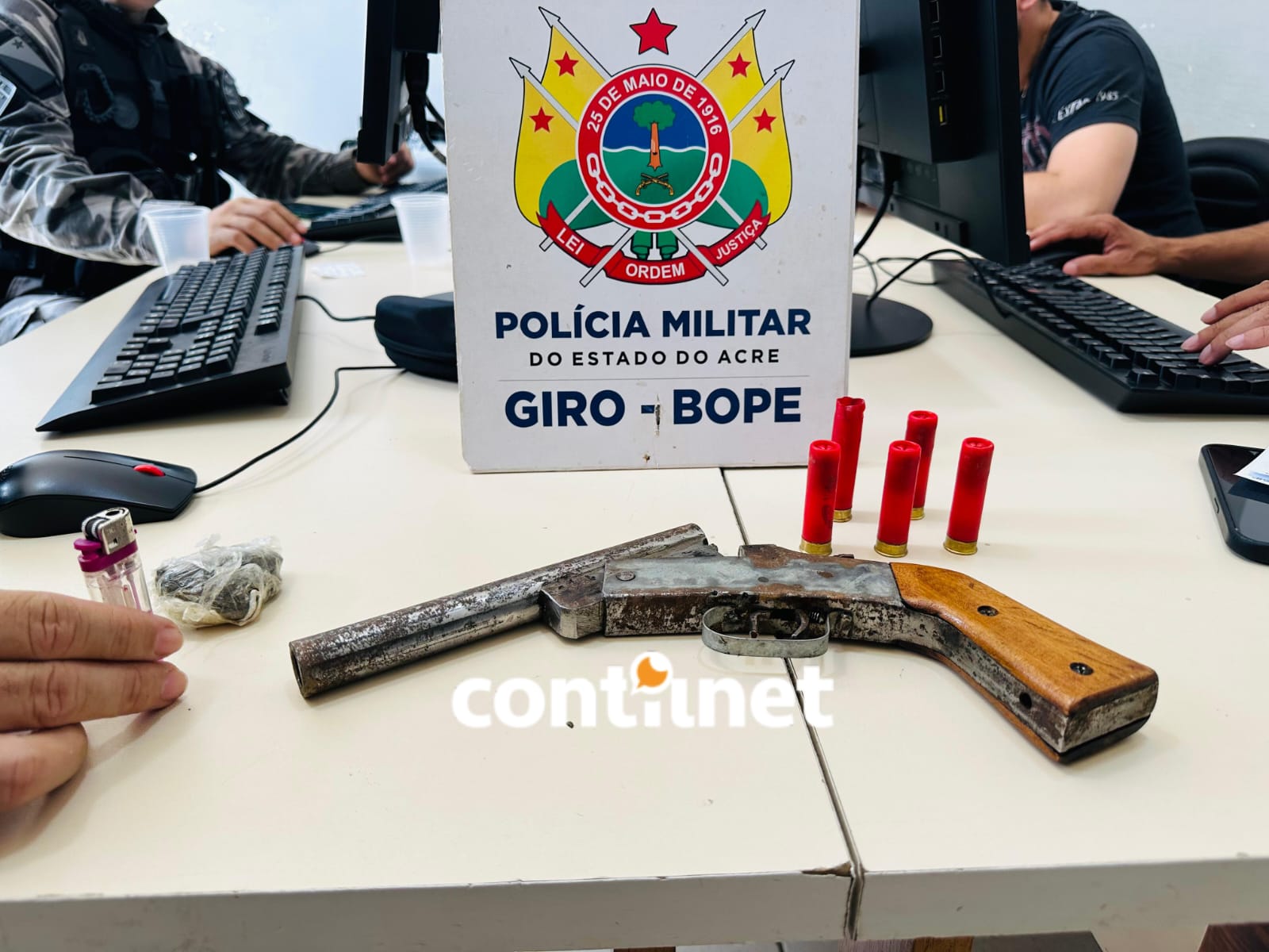 Gabriel de Araújo Almeida, de 22 anos, foi preso em flagrante na manhã desta sexta-feira (16) por portar uma arma de fogo em via pública, no Conjunto Cidade do Povo, em Rio Branco. A prisão foi realizada por policiais do Grupamento de Intervenção Rápida Ostensiva (GIRO), do Batalhão de Operações Especiais (BOPE), da Polícia Militar do Acre.