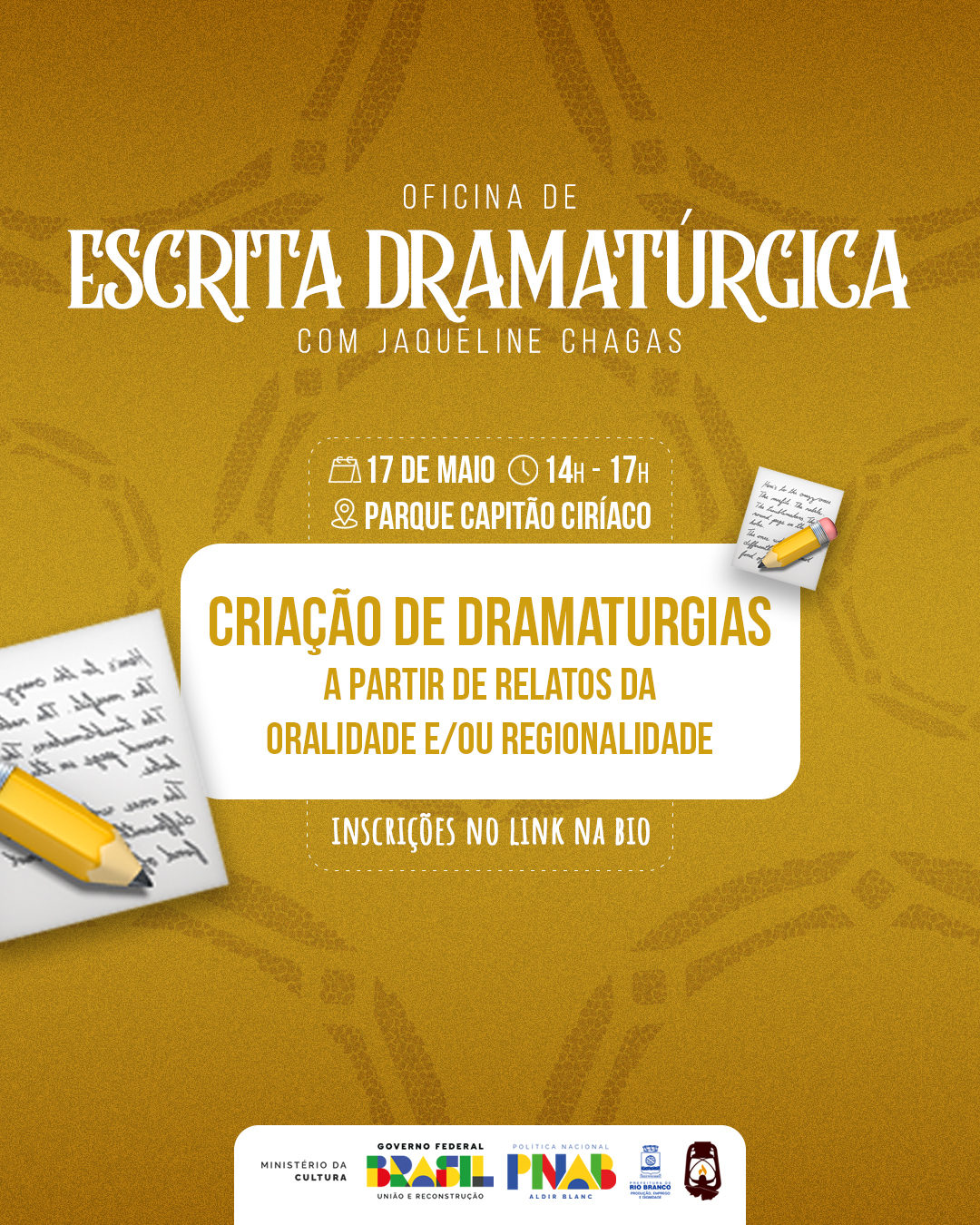Link de inscrição da oficina: https://forms.gle/2FE5Bh4RDkjqwfGSA