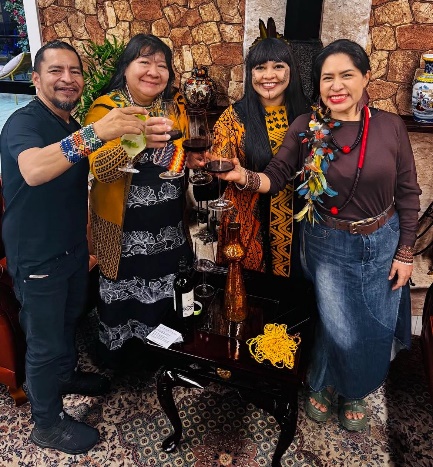 O cacique geral do Povo Yawanawa, Tashka Yawanawa, sua esposa Laura Soriano Yawanawa, presidente da Associação Sociocultural Yawanwa – ASCY (à direita), a presidente da FUNAI Joênia Wapichana e a deputada federal indígena Célia Xacriaba estão participando do 3º Festival Indígena União dos Povos – FIUP, que está acontecendo de 1 a 4 de maio, em Arujá-São Paulo.