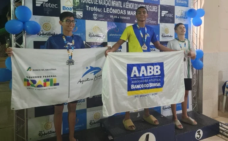 Luiz Antônio Jerônimo, da AABB, iniciou a Copa Norte de Natação (Troféu Leônidas Marques) na piscina da Vila Olímpica Roberto Marinho em Boa Vista, Roraima, “entregando tudo”. O garoto acreano conquistou as medalhas de ouro e bateu recordes da Copa nos 50 metros livres (25”58) e nos 50 metros peito(32”68).