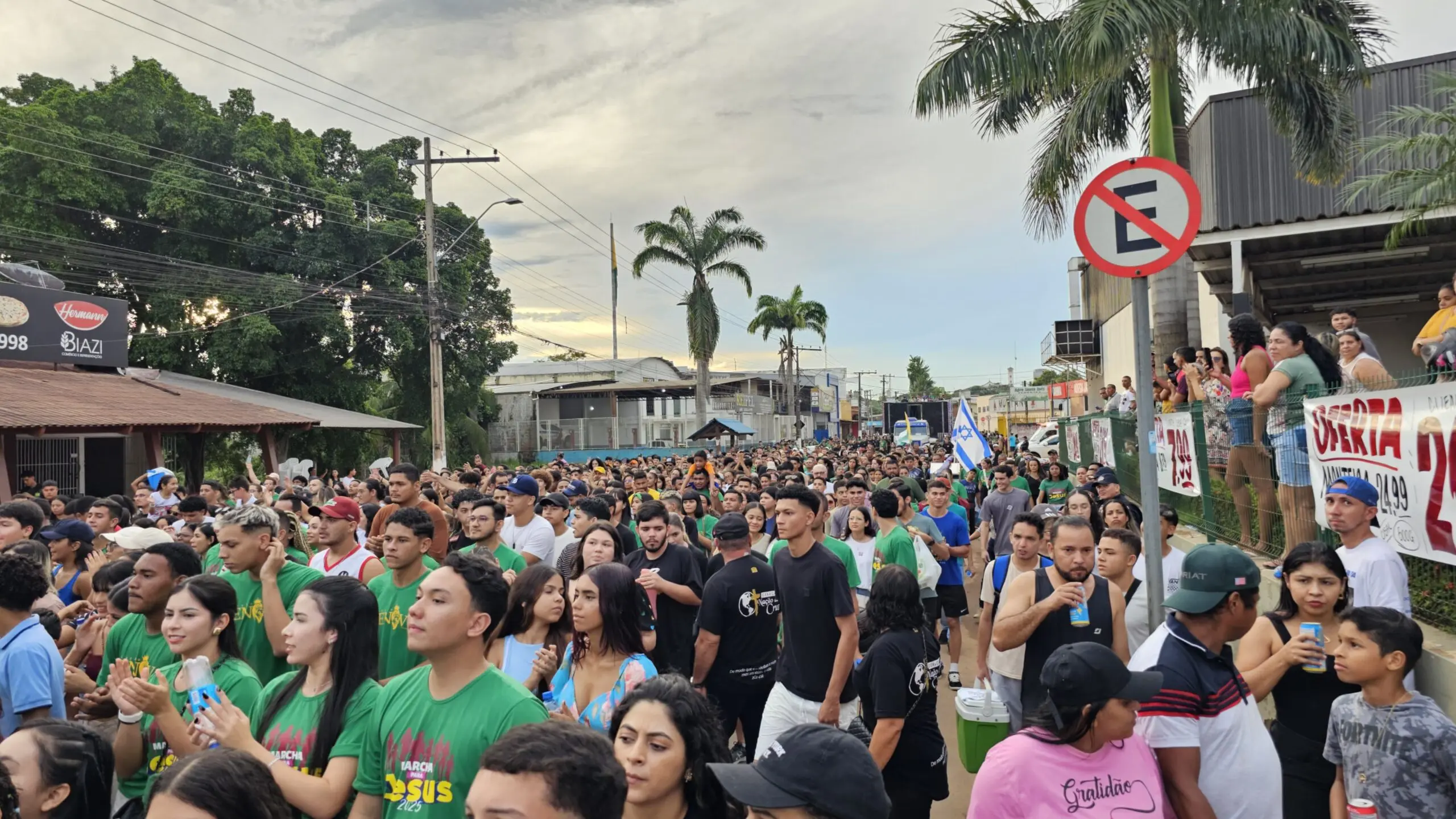 A multidão saiu da Gameleira a pé em direção ao estádio Arena da Floresta, onde ocorrerá o show de Eli Soares.