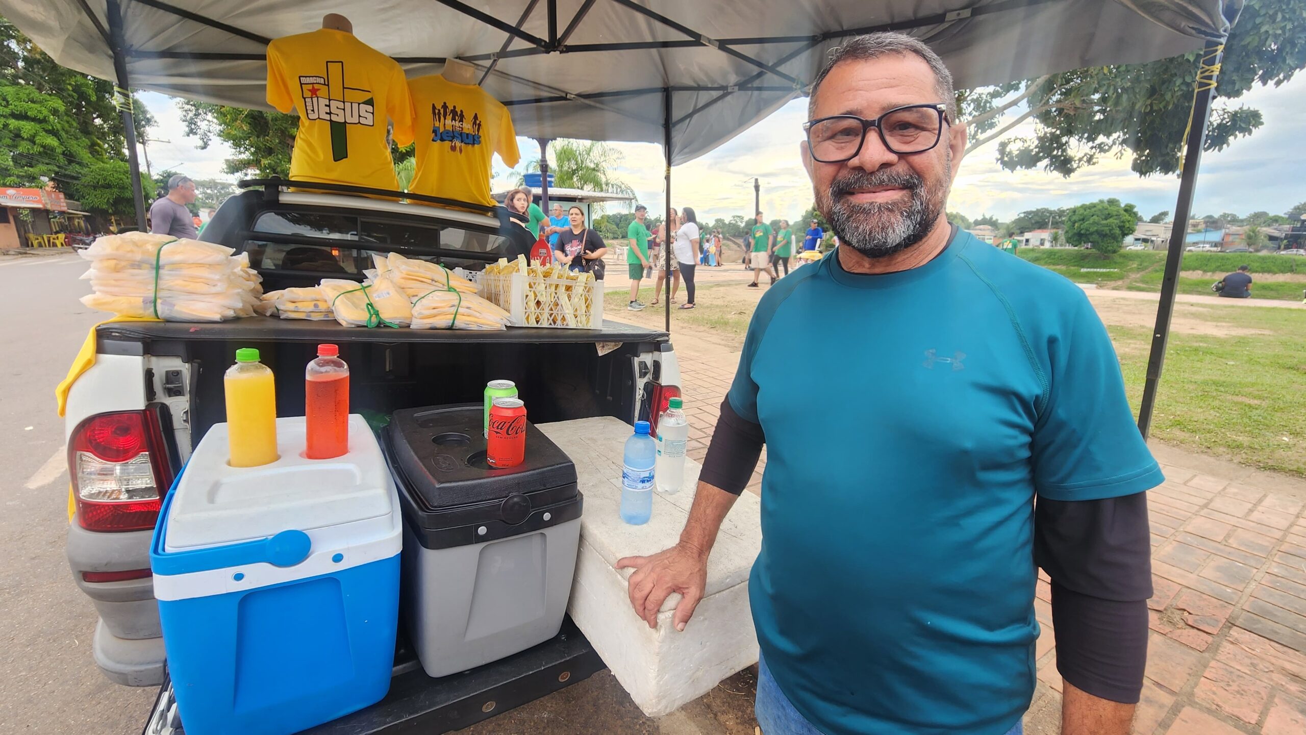 “Trabalho com malharia, camiseta e nos eventos assim, sempre na Marcha pra Jesus eu tô presente, todos os anos, mas dessa vez tá fraquinho, não vai dar pra tirar muito não”, disse.