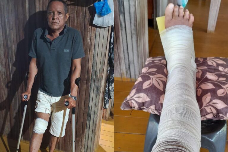 O trabalhador autônomo Eliudo Mota de Almeida, residente no ramal Santa Rosa, em Sena Madureira, está atravessando um momento delicado. No último dia 17, ele foi vítima de um acidente de trânsito e sofreu fraturas no joelho e no pé.