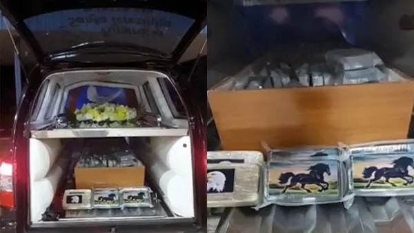 Um motorista de um carro funerário foi preso em flagrante por tráfico de drogasna noite de quinta-feira (29) na BR-262, em Terenos (MS). A Polícia Rodoviária Federal (PRF) encontrou 162,37 quilos de cocaína dentro do caixão que estava na carroceria do veículo. A identidade do suspeito não foi divulgada.
