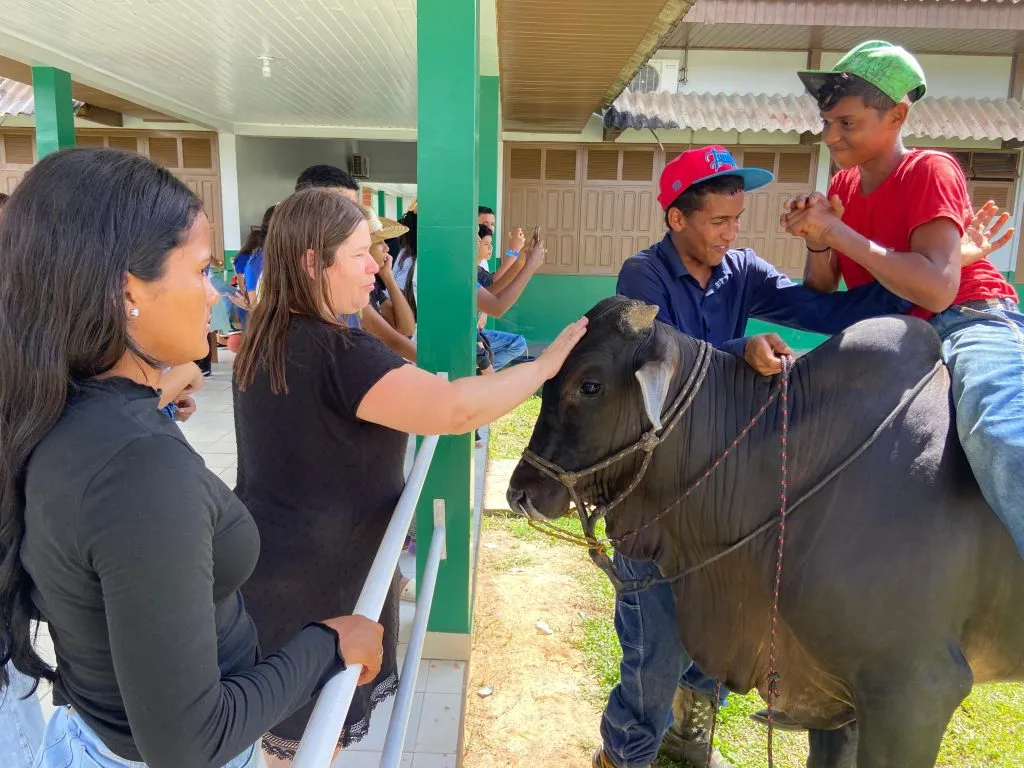 Estudantes da Escola de Ensino Integral Francisco Braga de Souza, no município de Rodrigues Alves (AC), surpreenderam a comunidade escolar ao levar bois para dentro da instituição como parte de um projeto pedagógico sobre o agronegócio. A iniciativa partiu do Clube do Claude, grupo estudantil criado por meio da metodologia dos Clubes de Protagonismo, adotada pela escola.