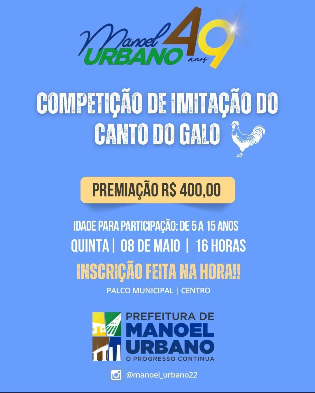 Uma competição, no mínimo inusitada, será promovida na cidade de Manoel Urbano, interior do Acre. A iniciativa é da Prefeitura e visa premiar em dinheiro o melhor imitador do canto do Galo.