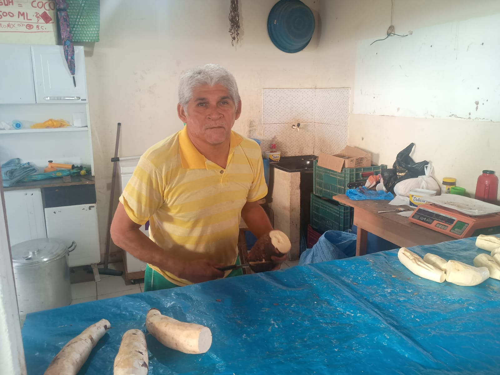 Outro exemplo de homem trabalhador é do senhor Antônio Francisco de Souza, 59 anos, conhecido como “Toim do Paris”. Há 44 anos, ele trabalha vendendo macaxeira, cheiro verde e outros produtos na Feira dos Colonos de Sena Madureira.
