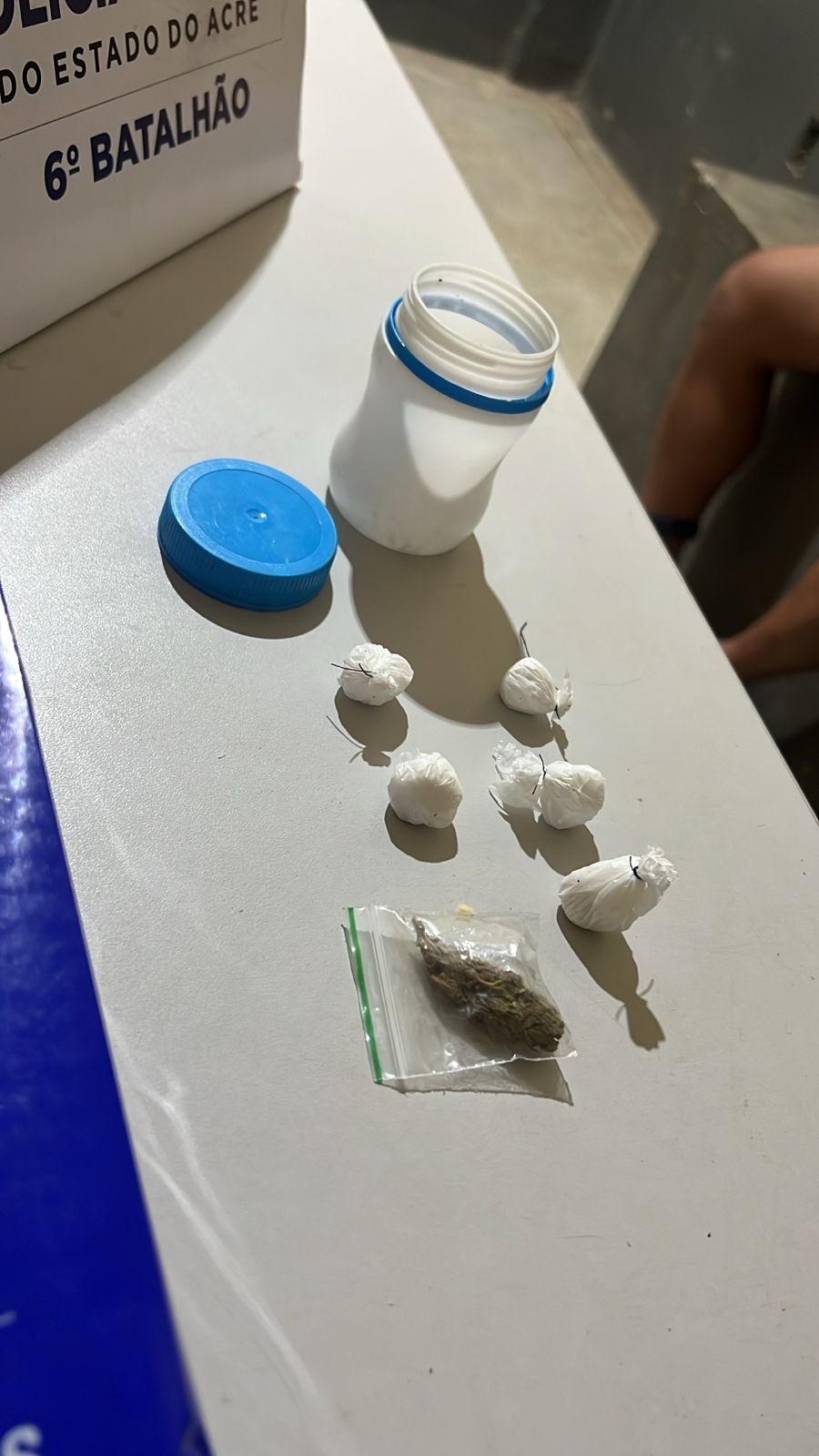 Ao localizar o suspeito, os policiais iniciaram a abordagem. O homem tentou esconder um recipiente contendo entorpecentes e, em seguida, tentou fugir do local, mas foi rapidamente detido pelos militares. No recipiente, foram encontrados invólucros de cocaína e maconha, já prontos para a comercialização.
