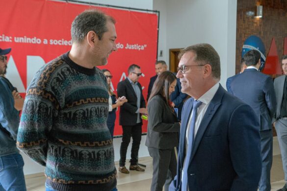 Durante o evento, o prefeito em exercício Alysson Bestene parabenizou o delegado Emylson Farias pela posse e destacou a capacidade de diálogo e articulação como qualidades essenciais para a condução da associação.
