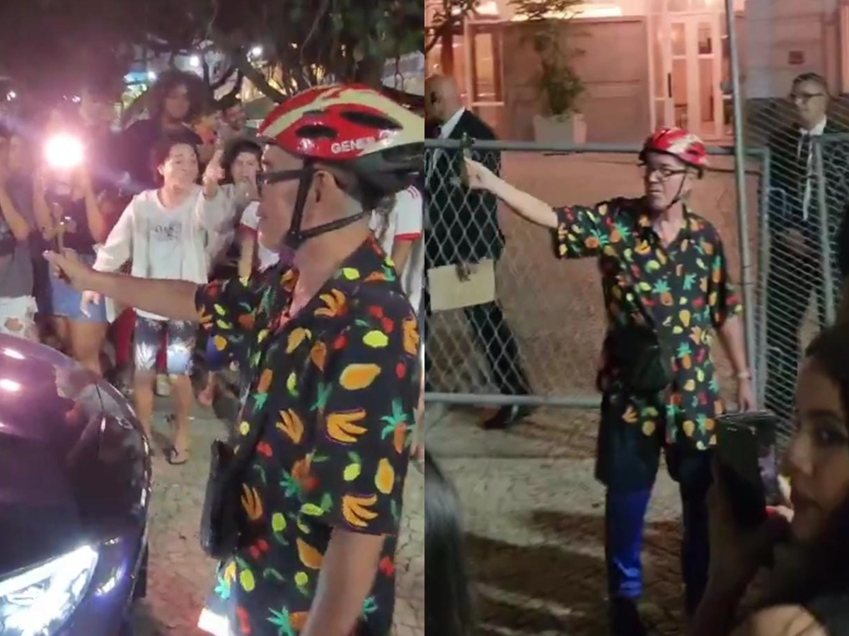 O Copacabana Palace está servindo entretenimento e confusão de primeira. Desta vez, um homem religioso surgiu de capacete e com um crucifixo nas mãos para tentar “salvar” os fãs de Lady Gaga. Os discípulos da diva pop, que estão de plantão na porta do hotel luxuoso, na Zona Sul do Rio, se depararam com a visita nada agradável de um senhor que os insultava. Segundo o veterano, as pessoas presentes seriam “satanistas” por admirarem a cantora internacional. Um segurança do estabelecimento precisou intervir, e o anônimo chegou até mesmo a tentar atrapalhar a entrada de um carro no local.