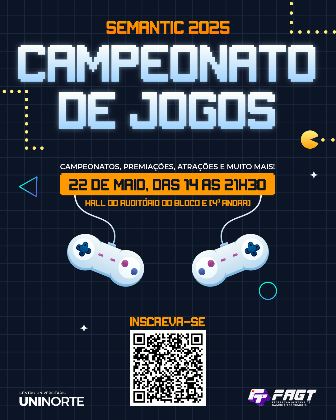 O Centro Universitário Uninorte realiza, através do curso de Sistemas de Informação e em parceira com a FAGT – Federação Acreana de Games e Tecnologia, a edição 2025 da SEMANTIC – Semana de Tecnologia da Informação e Comunicação.