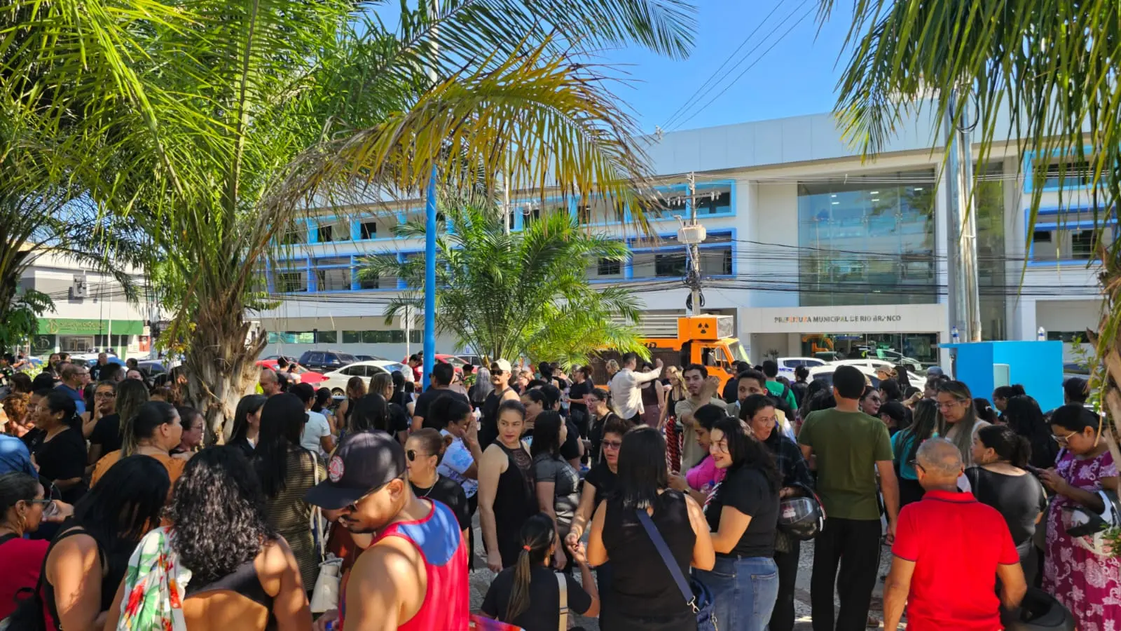 Servidores da Educação deflagram greve durante ato em frente à Prefeitura de Rio Branco