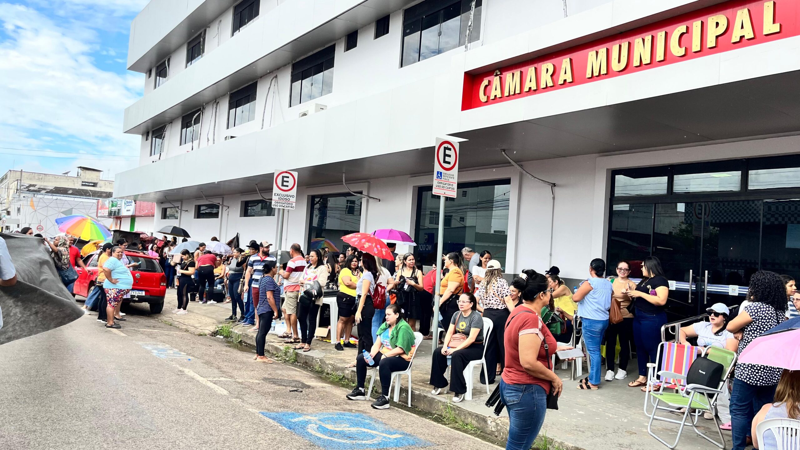 Na manhã desta terça-feira (27), servidores da educação municipal realizaram um protesto em frente à Câmara de Vereadores de Rio Branco. O ato bloqueou a Rua Hugo Carneiro e reuniu professores, mediadores e outros profissionais da área, que cobram da Prefeitura o reajuste salarial da categoria.