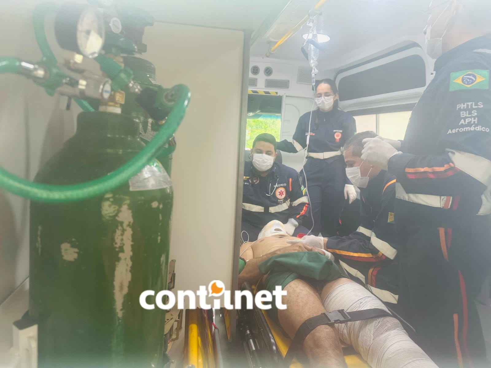 A equipe médica identificou, inicialmente, um traumatismo cranioencefálico (TCE) moderado e diversas fraturas. Diante da gravidade do quadro, Roberto foi transferido para o Pronto-Socorro de Rio Branco por uma ambulância do Serviço de Atendimento Móvel de Urgência (SAMU). Durante o trajeto, a ambulância de suporte básico foi interceptada por uma unidade de suporte avançado do SAMU, nas proximidades da Fazenda Niterói, na BR-317, para garantir maior estabilidade ao paciente.