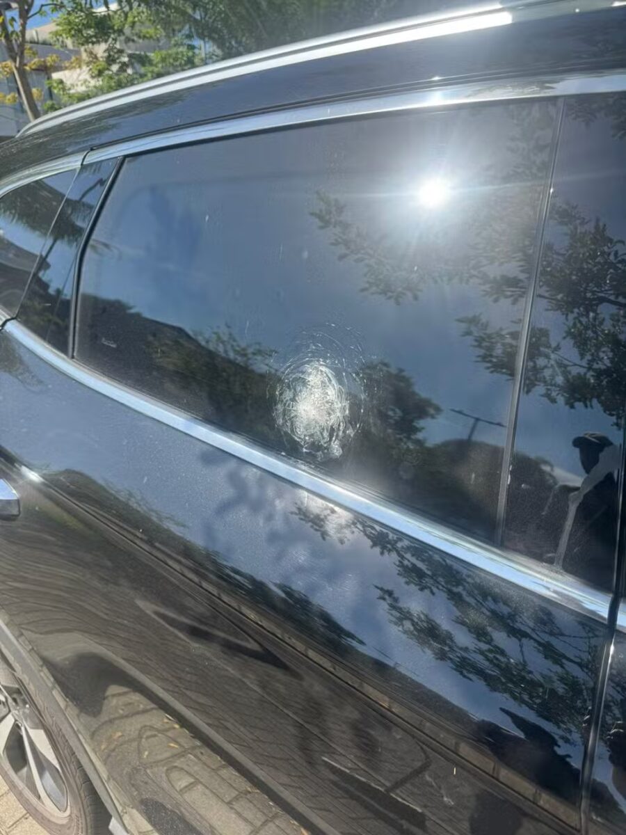 Carro de Rossi, do Flamengo, após ser alvo de tiros/Foto: Divulgação
