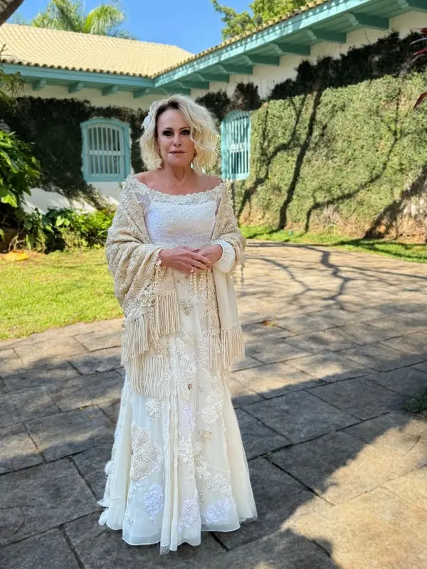 Para a ocasião, a apresentadora do Mais Você escolheu novamente um vestido de noiva exclusivo criado por Lethicia Bronstein — mesma estilista que confeccionou o primeiro vestido com que Ana casou com Fábio, numa cerimônia intimista, em 4 de abril, na casa dos dois, na capital paulista. “Bênção das nossas alianças. 28/06/2025”, postou a apresentadora no Instagram. Ela ainda fez uma live no Instagram mostrando a missa, com direito a leitura de Mariana Maffeis, primogênita da apresentadora.