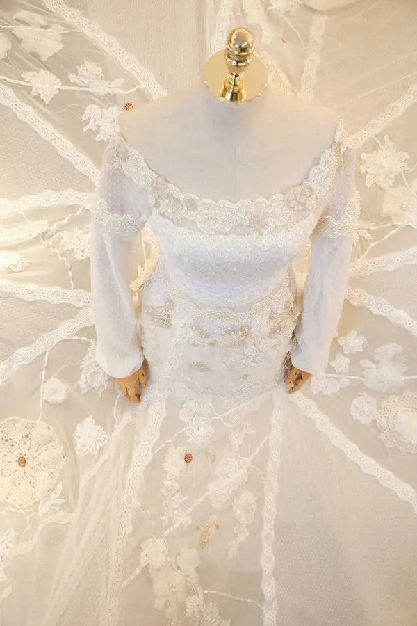 “Minha intenção era que esse vestido despertasse a sensação de algo precioso, como uma peça que atravessou gerações na família da Ana Maria — uma verdadeira joia de afeto, guardada com carinho e história ao longo dos anos”, explica Lethicia.