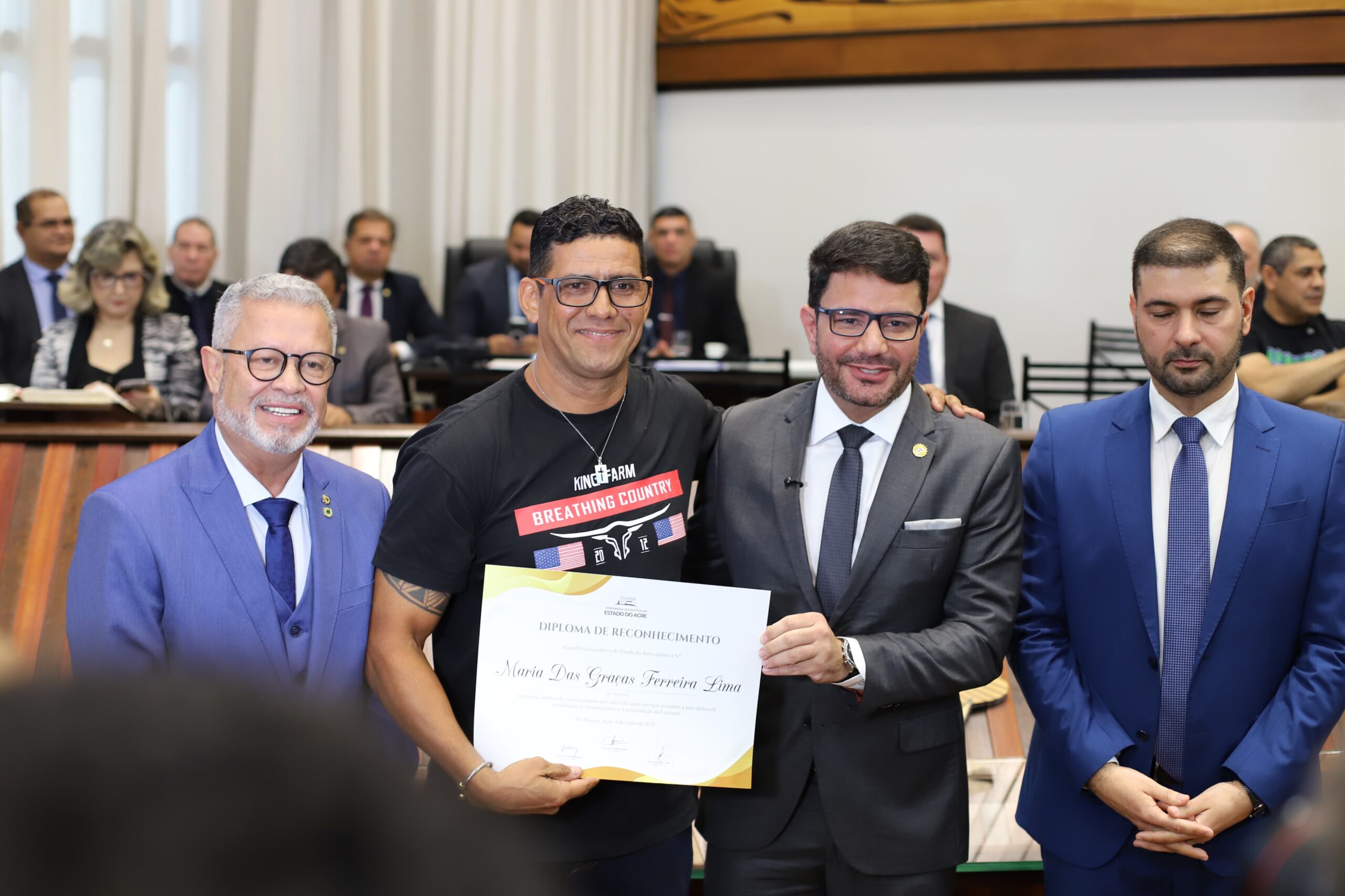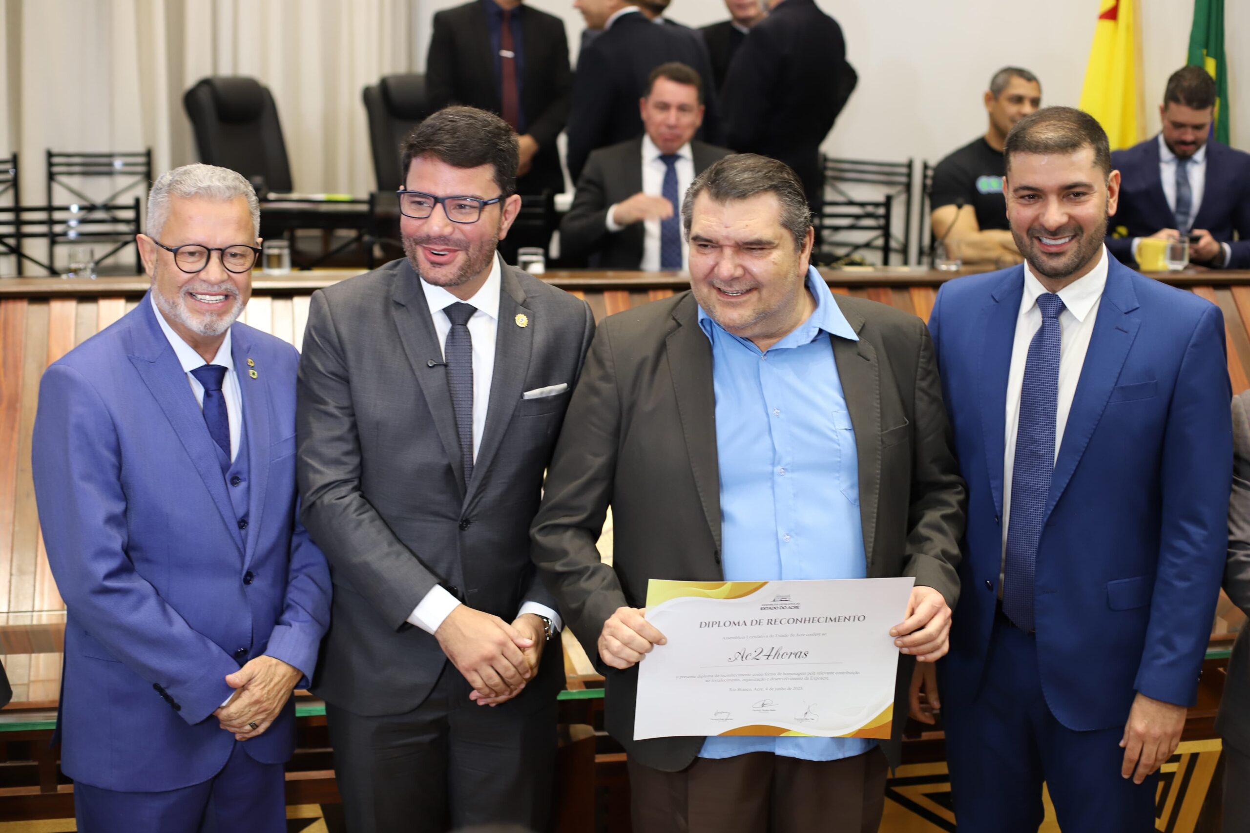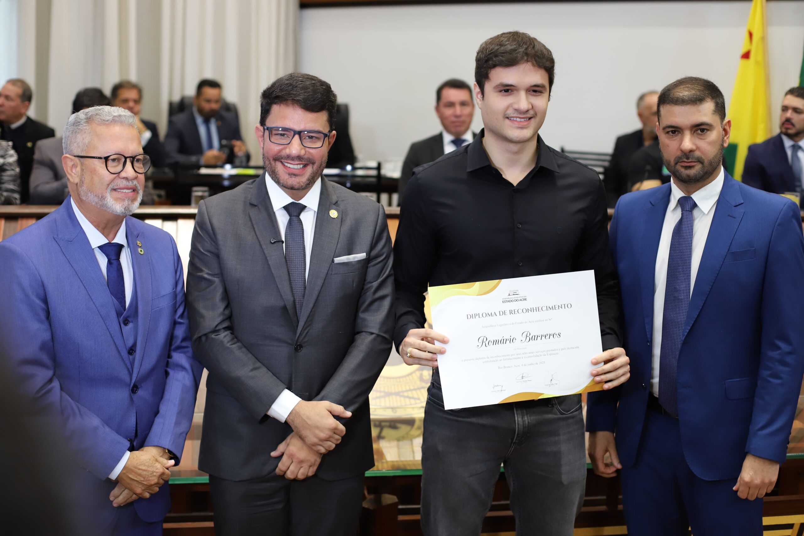 Durante a sessão solene que homenageia os 50 anos da ExpoAcre, nesta quarta-feira (4), a Assembleia Legislativa homenageou os nomes pioneiros que deram início ao evento que se tornou a principal feira agropecuária do estado.