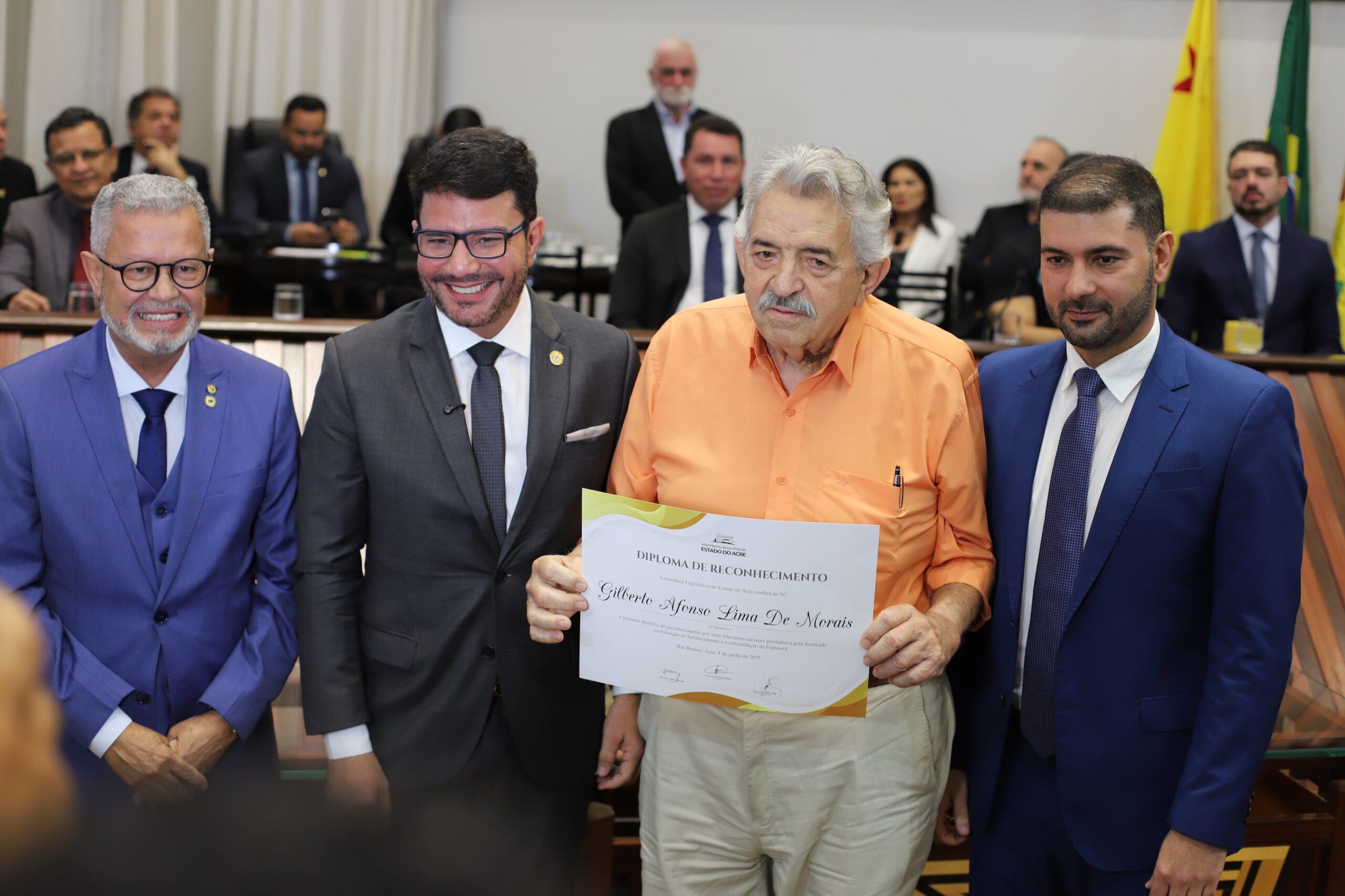 Outro nome homenageado foi o empresário e pecuarista, dono da Fazenda Piracema, Edilberto Afonso de Moraes, o Betão, um dos principais entusiastas da ExpoAcre. Ele também recebeu a homenagem “in memoriam” a seu filho Gilberto Afonso Lima, o Gil Betão, assassinado em Porto Velho, em 2008.