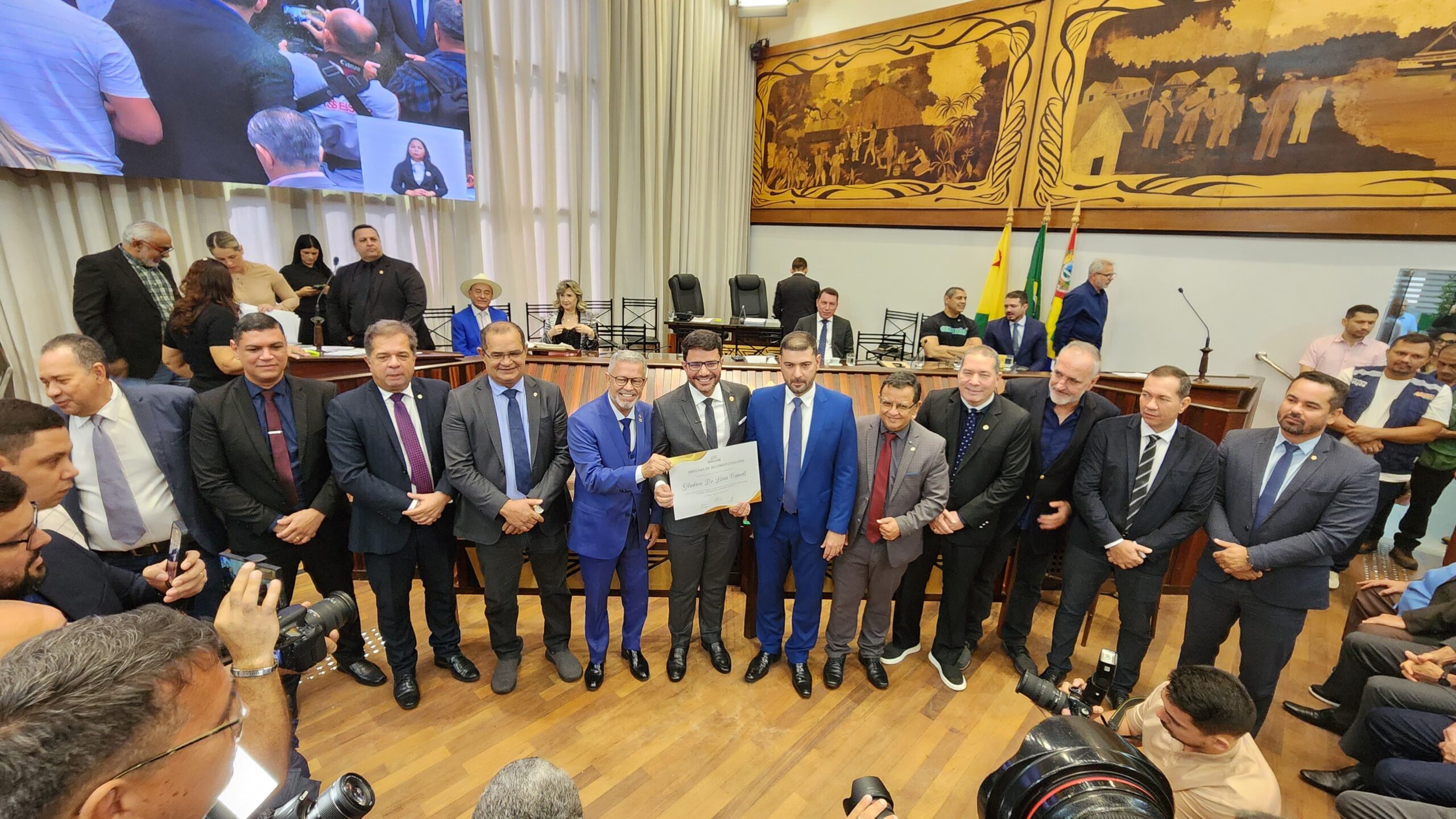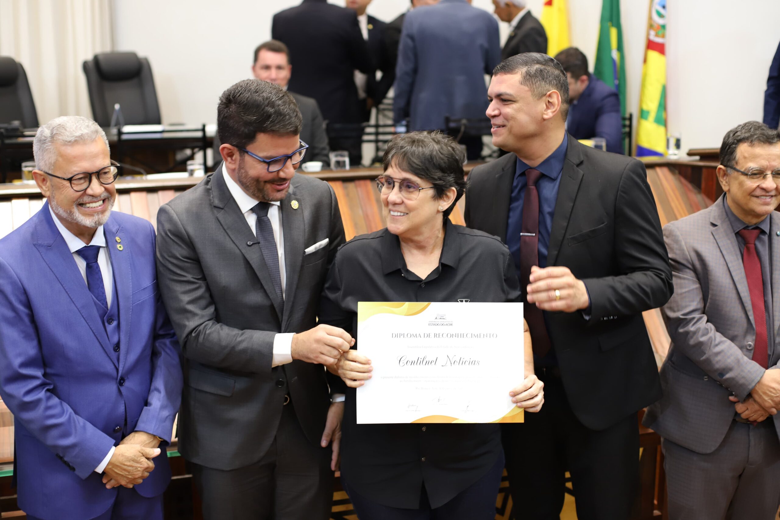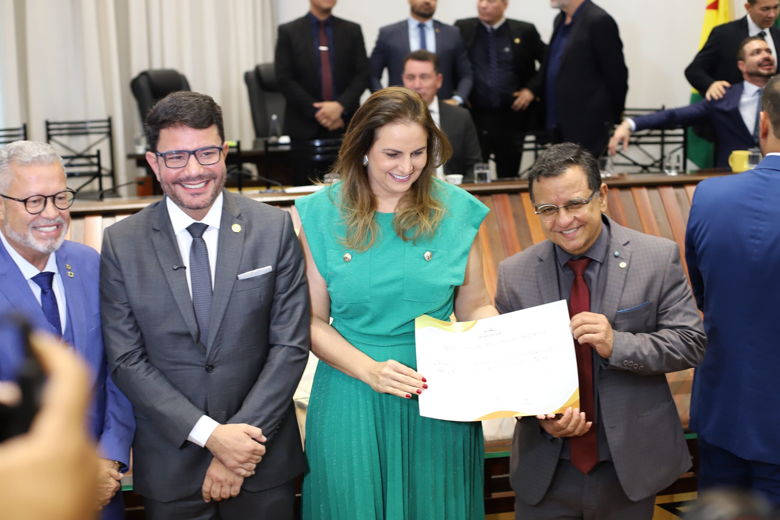 Ao todo, foram 70 homenageados. Os certificados foram entregues pelas mãos do governador Gladson Camelí, do presidente da Aleac, deputado Nicolau Júnior, do deputado Afonso Fernandes, autor do requerimento que sugeriu a sessão solene e do secretário da Casa Civil, Johnatan Donadoni, que coordena a organização da feira.