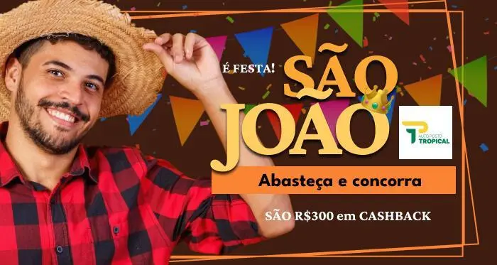O Auto Posto Tropical está com uma promoção especial em clima de São João para os clientes que abastecerem no local. Até o dia 31 de julho de 2025, quem abastecer e baixar o aplicativo MeuPosto acumula R$ 0,20 de cashback por litro de combustível, valor que poderá ser resgatado em abastecimentos futuros.