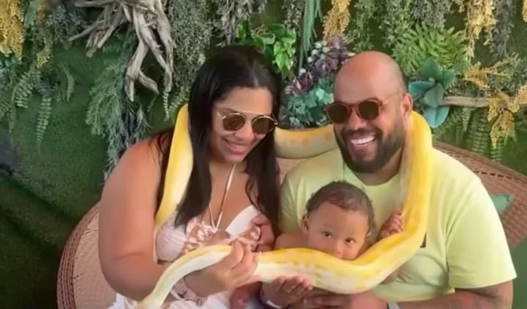 Um bebê tentou morder uma serpente durante uma foto de família no município de Maragogi. A cena na cidade do Litoral Norte de Alagoas foi feita numa famosa pousada e ecopark interativo localizada na Praia de Barra Grande e ganhou as redes sociais nesta segunda-feira (9).