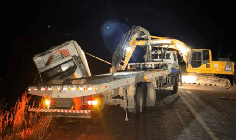 O veículo ficou às margens da rodovia por várias horas, chamando a atenção de quem passava pelo local. A remoção foi considerada complicada devido às condições da estrada, o que fez com que os trabalhos se estendessem até o início da noite.
