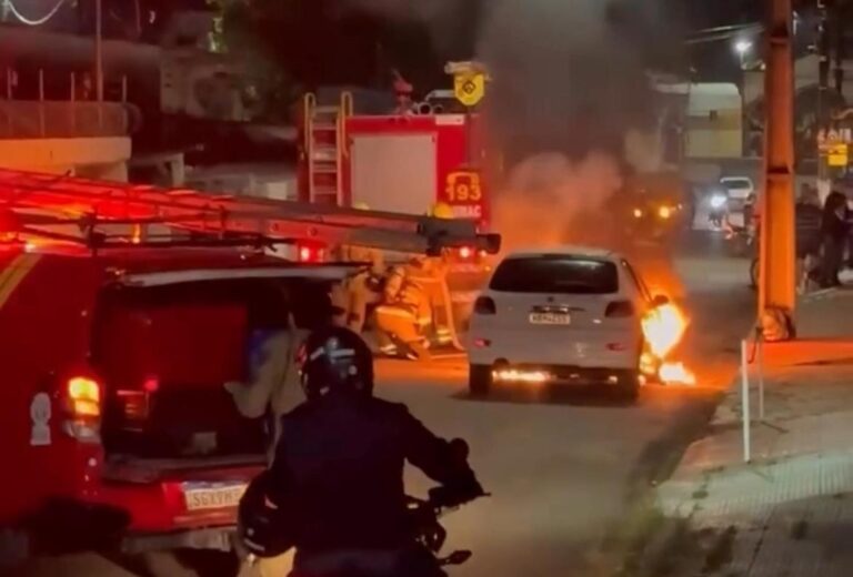 Imagens registradas pelo fotógrafo James Pequeno mostram o carro completamente tomado pelas chamas. O Corpo de Bombeiros foi acionado e conseguiu controlar o incêndio rapidamente.