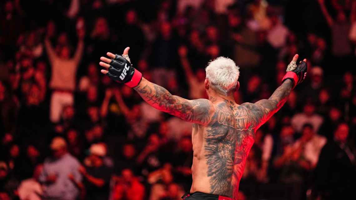 Charles do Bronx sobe no octógono para comemorar sua vitória contra Michael Chandler no UFC 309, no Madison Square Garden, em Nova York Chris Unger/Zuffa LLC