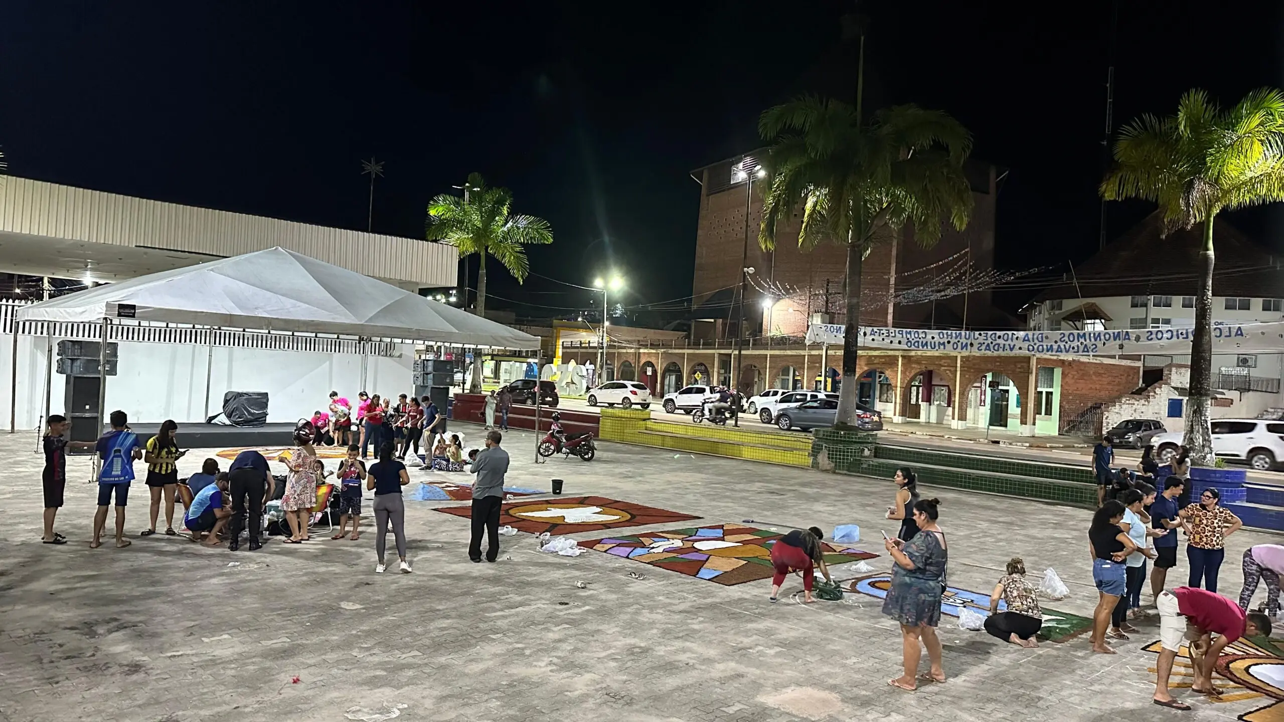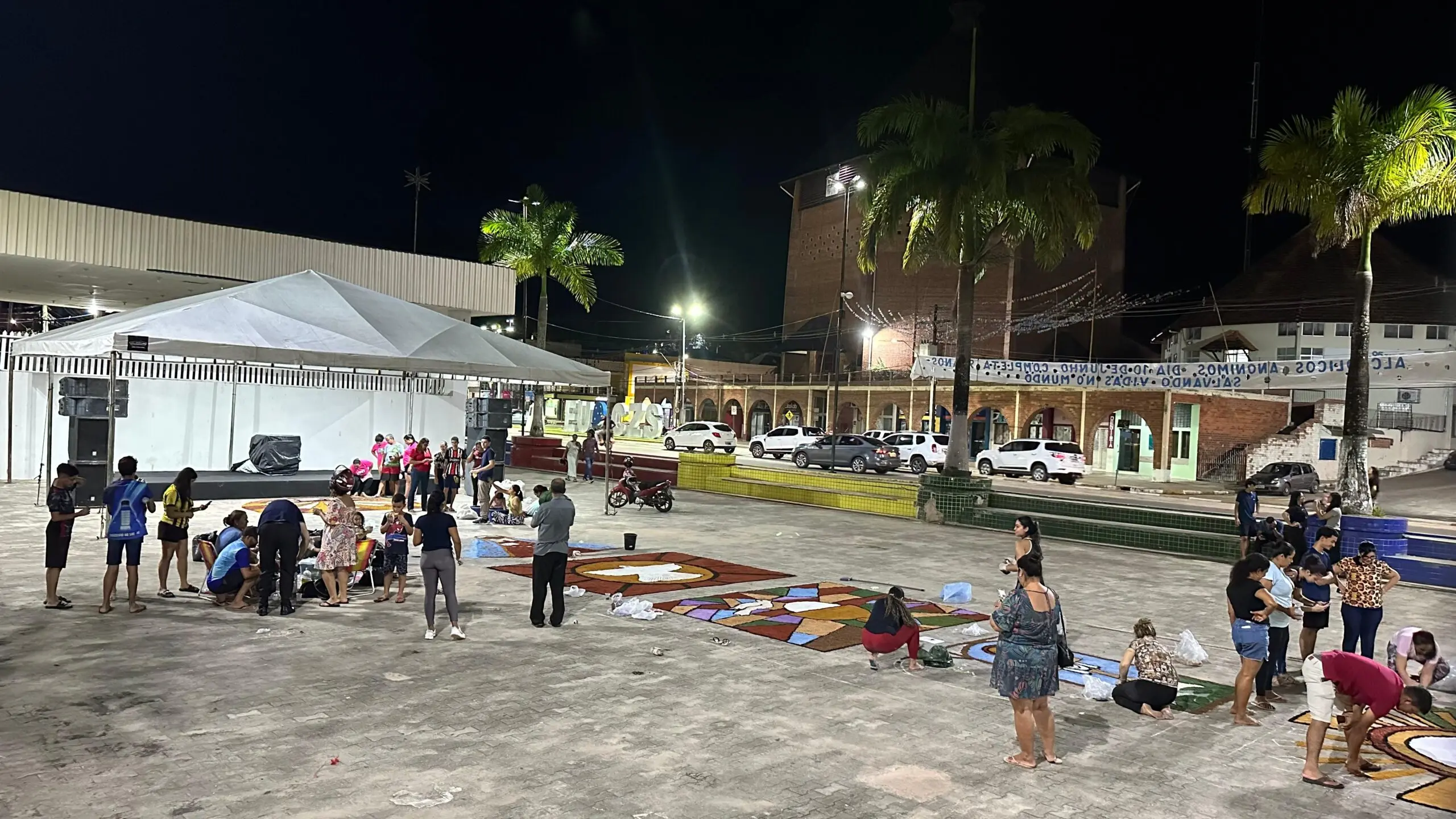 Diferente de anos anteriores, em que cada paróquia realizava sua própria celebração, desde 2022 a confecção do tapete é feita em conjunto pelas três paróquias de Cruzeiro do Sul. A proposta é unir esforços e criar um “tapetão” que percorre toda a praça central da cidade.