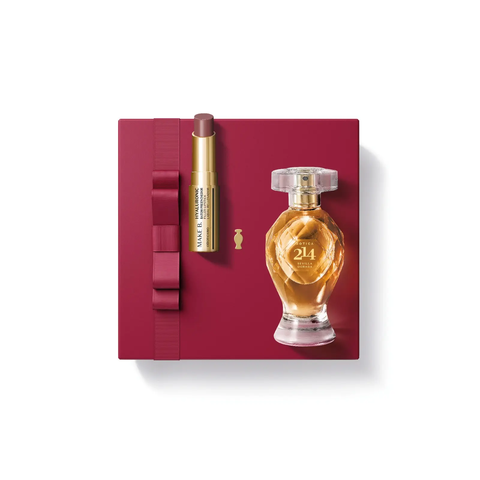 O Combo de Botica 214 Sevilla Dorada feminino traz um eau de parfum de fragrância floral radiante e envolvente, capaz de transportar você para uma atmosfera repleta de cores, alegria e sofisticação, como a cidade de Sevilha. Também acompanha um batom dourado marcante que complementa o presente por um preço especial para quem você ama.