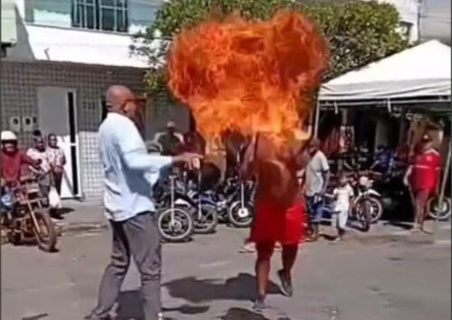 Uma apresentação de rua realizada na Bahia gerou controvérsia após um artista, que usava fogo como parte de sua performance, ser acusado por um pregador evangélico de estar fazendo “obra do diabo”. O religioso se mostrou incomodado com o ato de cuspir fogo, alegando que aquilo era coisa do “capeta”, o que iniciou uma discussão em plena via pública.