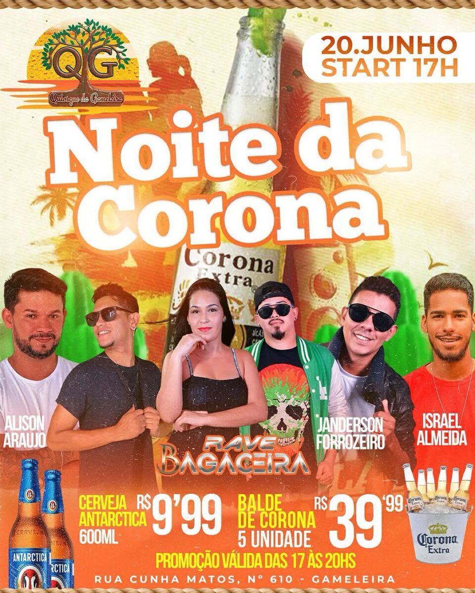 Sextou daquele jeito! No Quiosque da Gameleira, é dia da Noite da Corona, clima de pista livre na beira do rio, uma breja na mão e aquele som no ponto.