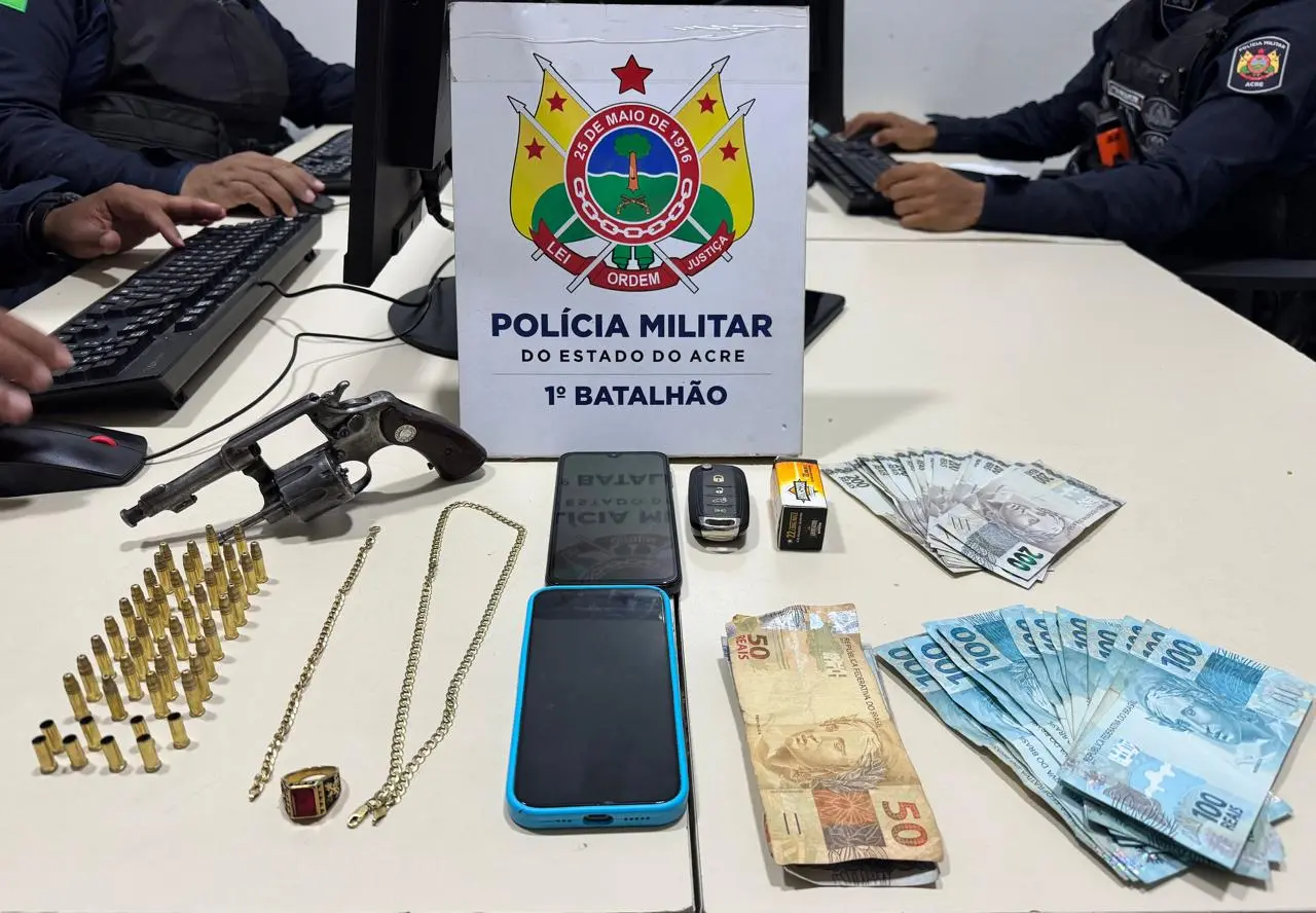 Na madrugada desta segunda-feira, 30 de junho de 2025, dois homens foram presos após efetuarem disparos de arma de fogo e tentarem fugir da Polícia Militar, em Rio Branco. A ocorrência começou por volta das 4h, quando a Rádio Patrulha 101, do 1º Batalhão da PM, fazia rondas preventivas na Travessa Santa Inês, bairro Aviário.