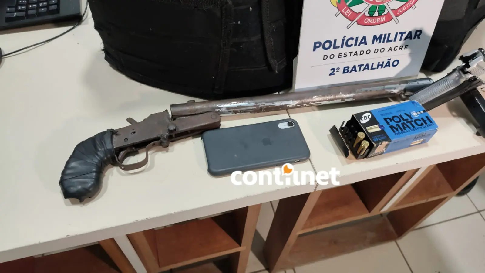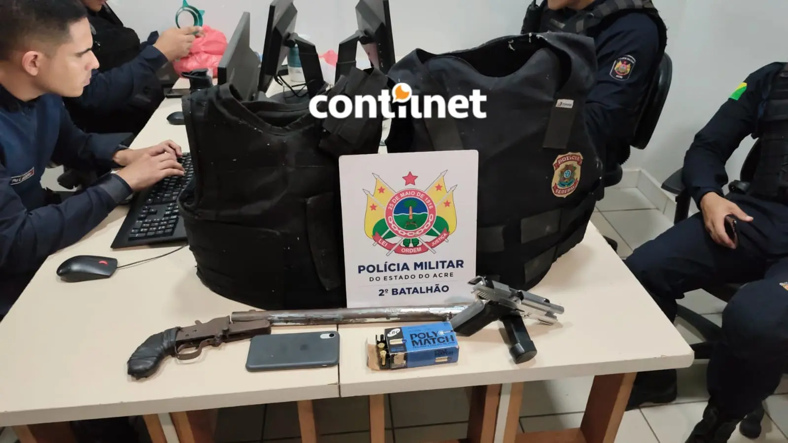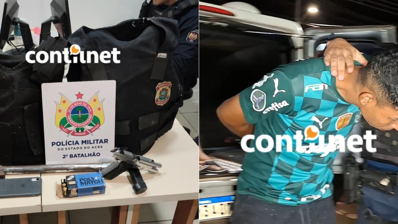 Ao se deslocarem até o endereço indicado, os policiais encontraram Elias, que portava uma pistola calibre .40 com uma munição na câmara e outra munição calibre .38 no bolso da bermuda. Dentro do imóvel, foram localizados ainda dois coletes balísticos, sendo um deles com identificação da Polícia Federal.