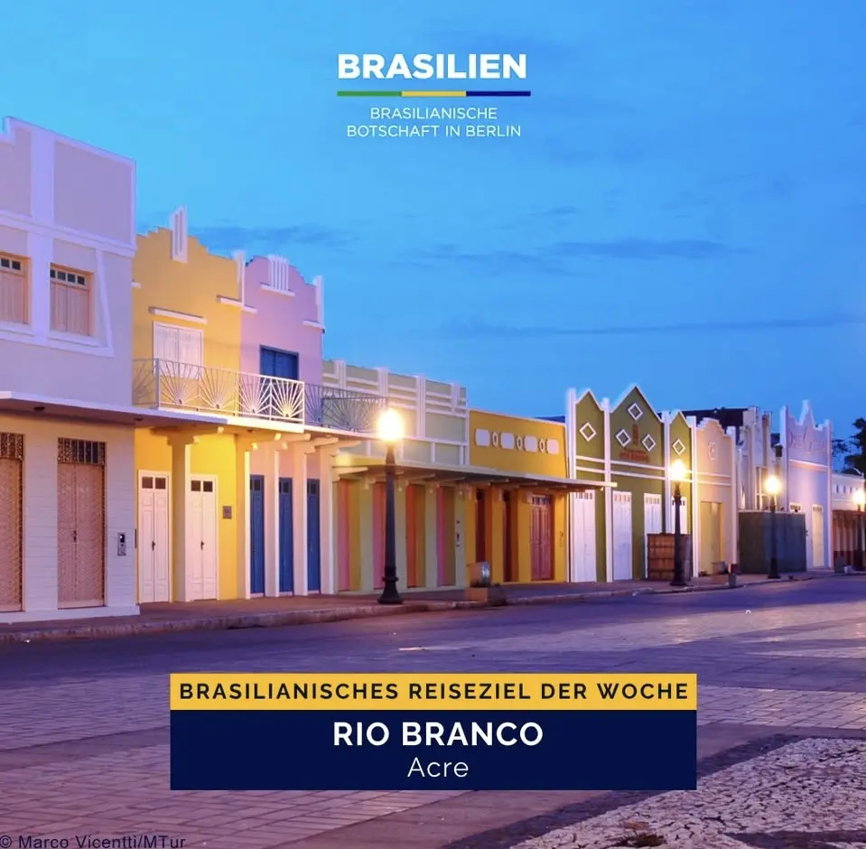 O consulado é embaixada brasileira em Berlin publicou em suas redes oficiais na última sexta-feira fotos exaltando a capital do Acre, Rio Branco.