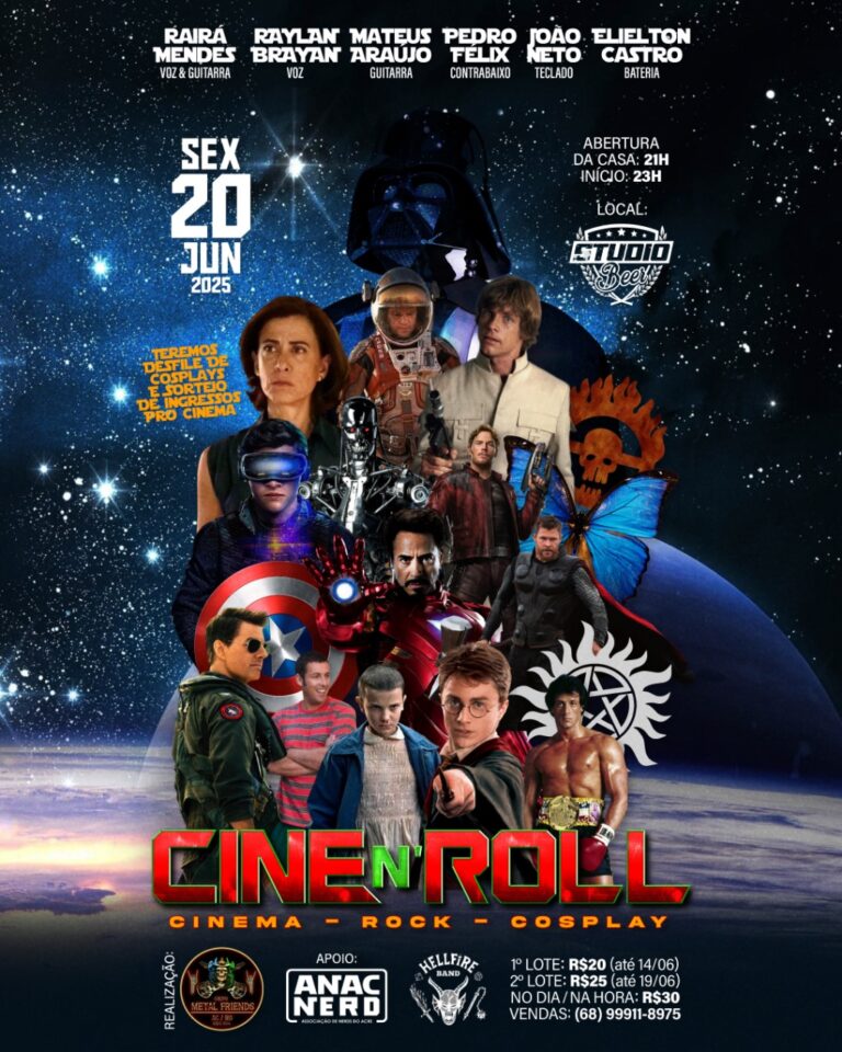 Uma noite mágica promete agitar Rio Branco na próxima sexta-feira (20), no Studio Beer. A casa vai receber um show ao vivo que une o melhor do rock com as trilhas sonoras mais marcantes do cinema. A apresentação será uma verdadeira viagem musical por sucessos de filmes icônicos como Rocky II, Sobrenatural, Stranger Things, O Exterminador do Futuro, Top Gun, Homem de Ferro, entre outros clássicos que fizeram história nas telonas.