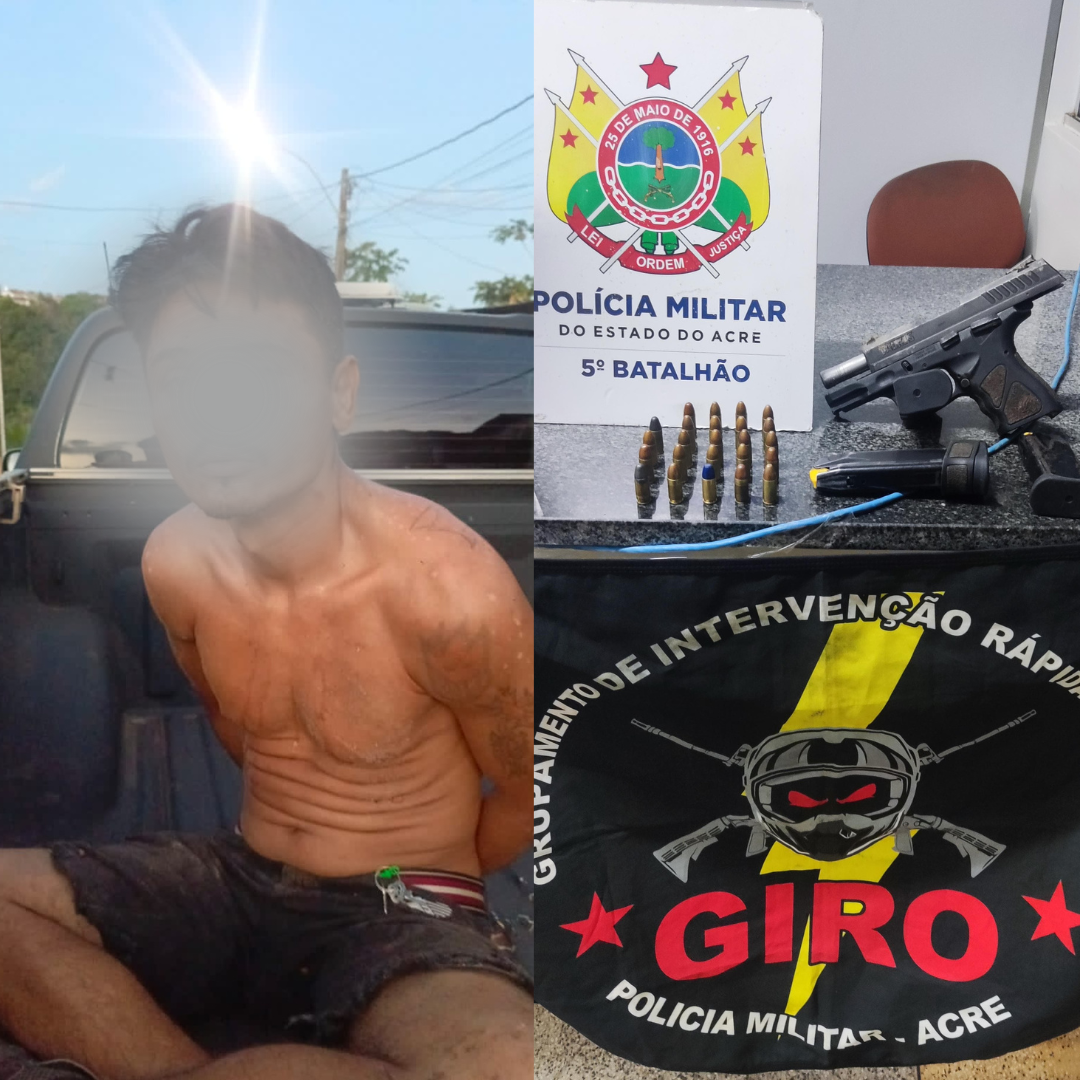 O foragido da Justiça Levy Ferreira da Silva foi preso, acusado de porte ilegal de arma de fogo, na tarde desta sexta-feira (dia 6), durante um patrulhamento realizado após denúncia de moradores do bairro Aeroporto, no município de Epitaciolândia, no interior do Acre. A ação ocorreu após relatos de disparos de arma de fogo na região, nos fundos do Bar do Tira Couro.